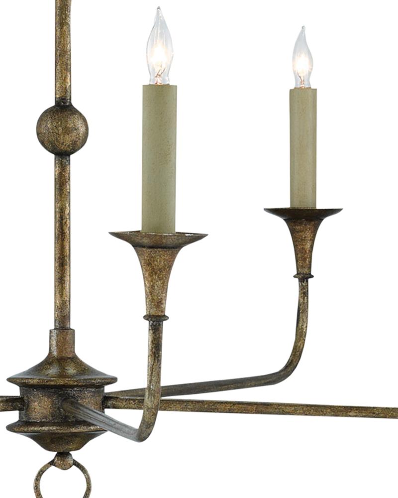Design notes on the Nottaway Bronze Small Chandelier include long arms that stretch gracefully from a small cog and a ring that ornaments its bottom-most point. The profile of the fixture has a lovely fluidity to it, and the Pyrite bronze finish adds textural interest to the bronze chandelier. Adjustable from 23.75" to 92.75" with use of included chain/rod kit/cable. If your space calls for a longer drop, additional chain/rods/cable is available for purchase.