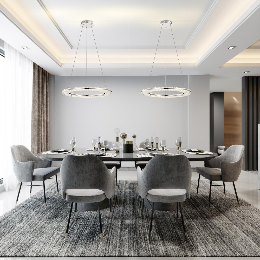 Encounter the Nova 62-2446 LED round pendant, where contemporary crystal design meets classic elegance. Crafted with luxurious K9 crystal, each piece shines with exquisite clarity, casting a radiant glow throughout your space. Finished in polished nickel,