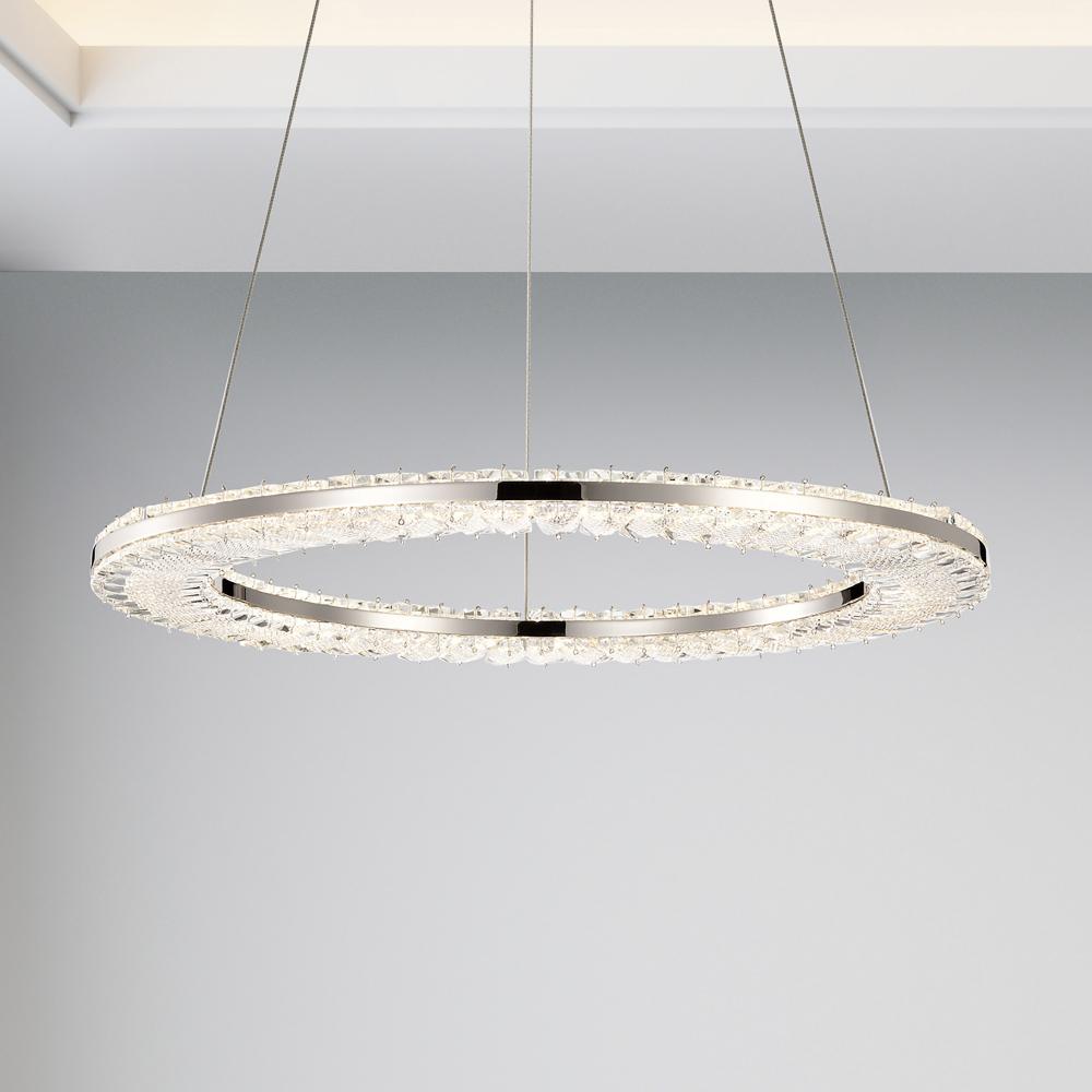 Nova; LED 23 Inch Round Pendant; Polished Nickel Finish; K9 Crystal