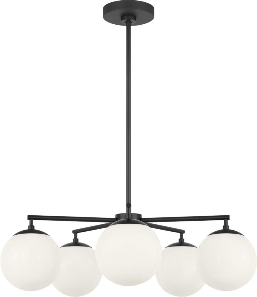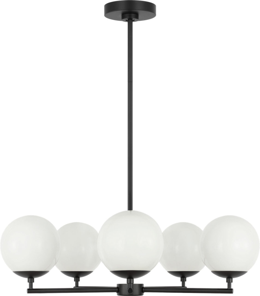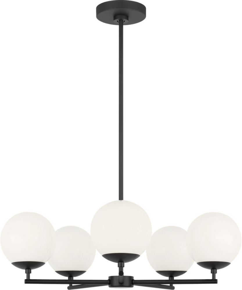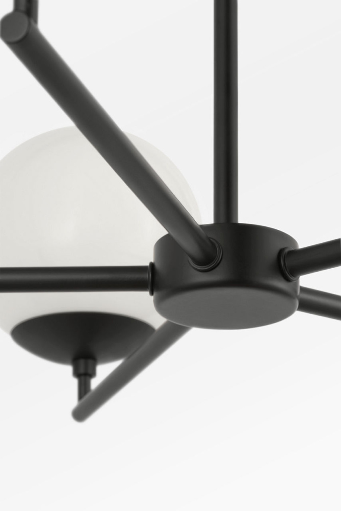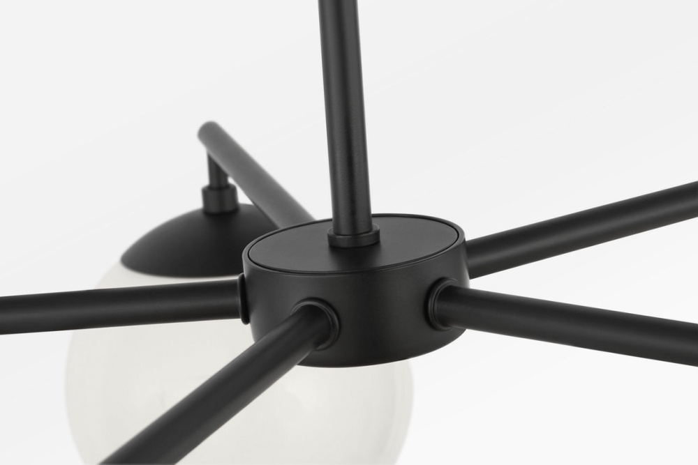 The Nube 5?Light Chandelier presents five milk glass globes arranged around a minimalist central hub. Its reduced scale retains the airy aesthetic of larger variants while suiting dining rooms, foyers, or smaller living areas. The design emphasizes negative space, letting the spheres feel weightless and unobstructed.