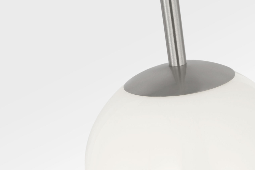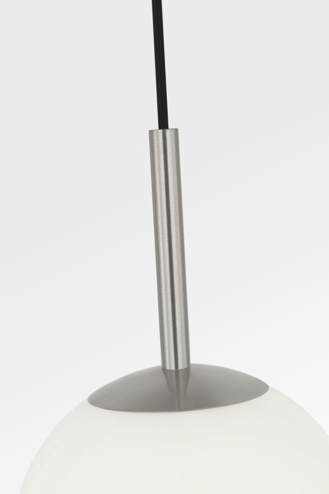 Nube 1?Light Pendant features a single milk glass globe seemingly floating below a slender cord. The fixture maintains contemporary appeal with soft diffused light and minimal supporting structure. Its pared-down form is suited for hallways, stairwells, or in multiples over counters.