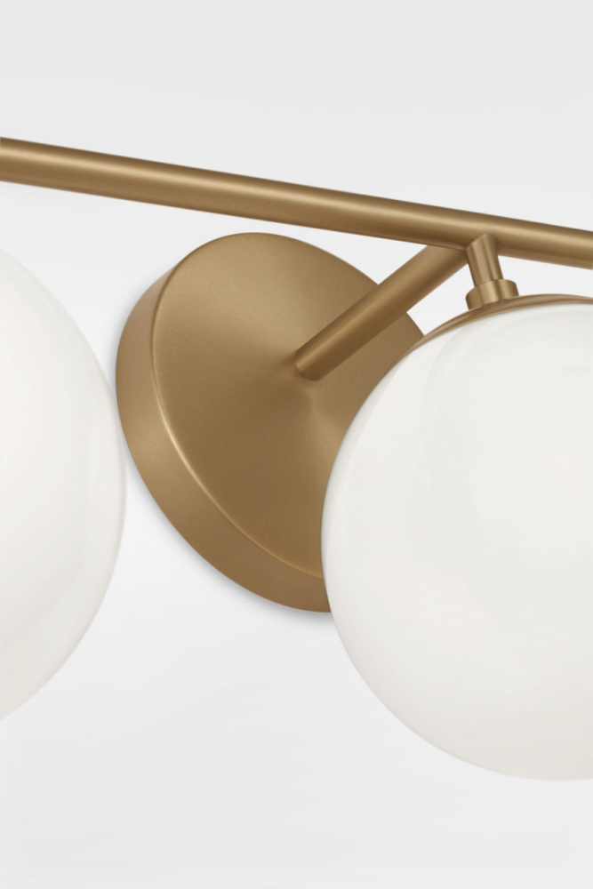 The Nube Vanity fixtures reinterpret the floating globe motif for wall-mount use. Whether in the 1?Light, 2?Light, or 3?Light format, milk glass spheres appear to hover just beneath a horizontal bar mounted to the wall plate. Designed for bathrooms, powder rooms, or corridor lighting, the vanity series provides flattering illumination at face height while maintaining the airy silhouette of the chandelier variants.