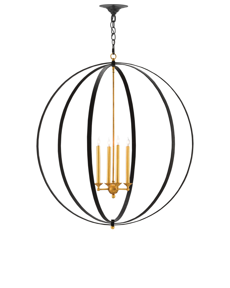 Taking time-honored shapes and turning them into ultramodern representations of their former profiles is a talent the design team at Currey & Company have proven time and time again. Case in point is the Ogden Orb Chandelier, which exhibits the globe shape for which traditional chandeliers are known but with such minimalistic lines, it becomes one of our most versatile fixtures. The intermingling of chinois antique gold leaf and black finishes adds an elegant touch to this chandelier.