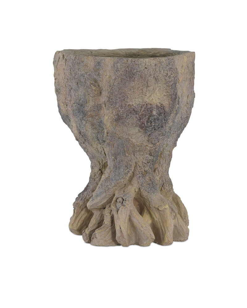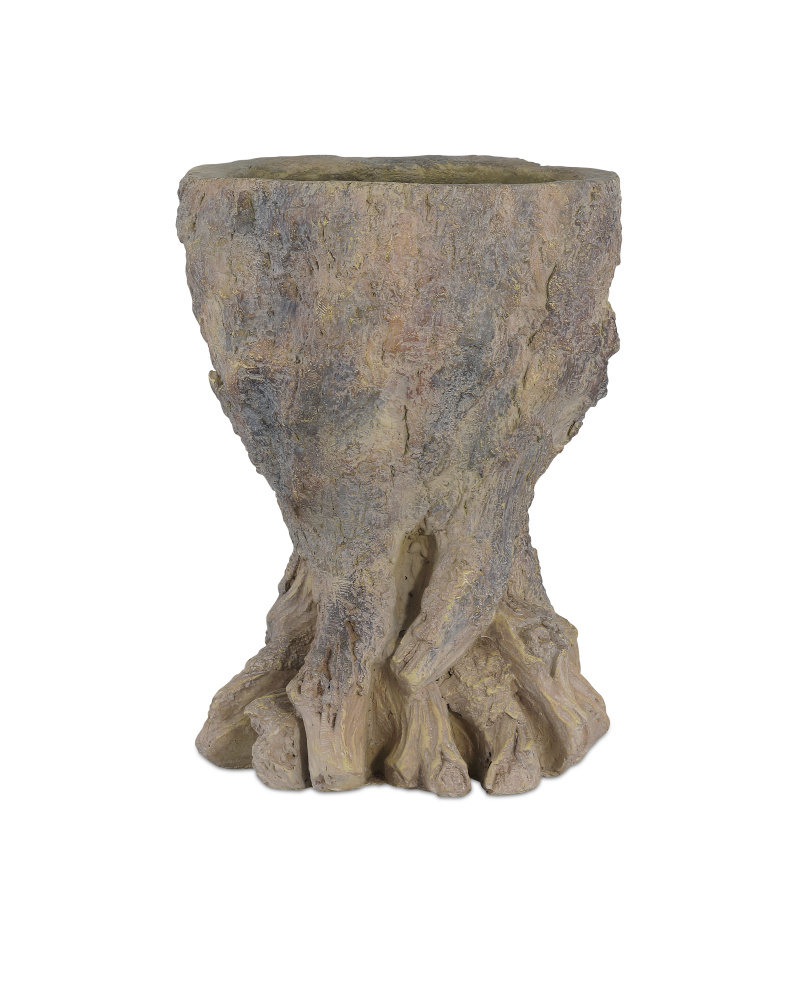 In the tradition of faux bois, the Old Growth Small Planter is incredibly lifelike. Crafted from fiber cement in a dappled finish, the stump-shaped brown planter looks aged like an antique would had it been ornamenting a garden for decades. The way the gnarled roots culminate at the bottom is particularly convincing. This plant pot has a drain hole.