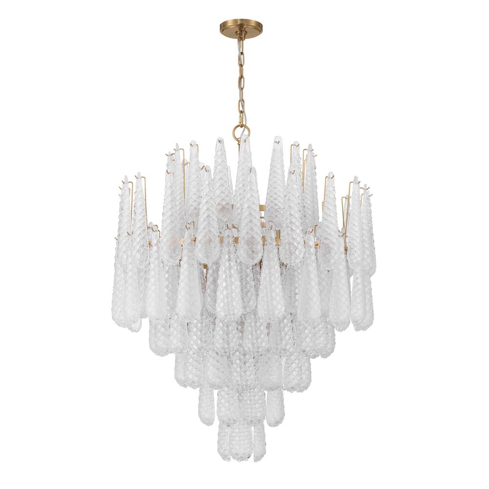 Inspired by vintage and mid-century design, the Ollie collection features hand-blown glass with intricate raised details. The beautiful hues of this collection shift subtly depending on whether the light is on or off, creating a dynamic and artistic effect. This unique piece blends mid-20th-century charm with a modern touch, making it a true statement fixture.