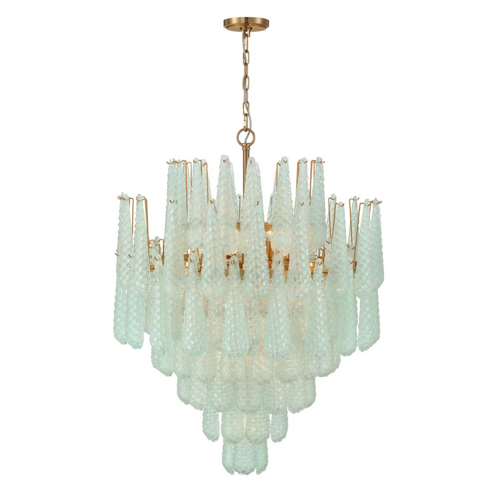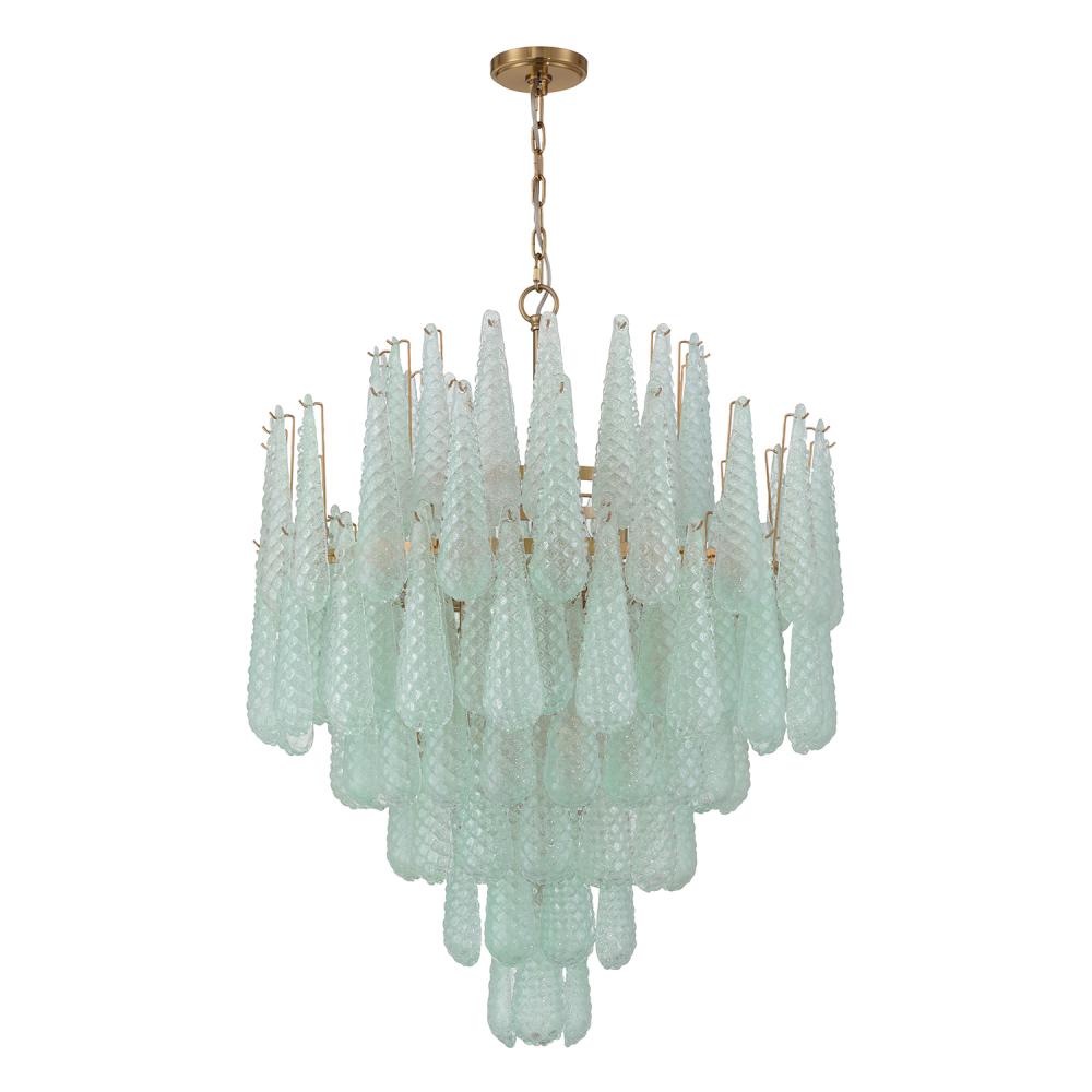 Inspired by vintage and mid-century design, the Ollie collection features hand-blown glass with intricate raised details. The beautiful hues of this collection shift subtly depending on whether the light is on or off, creating a dynamic and artistic effect. This unique piece blends mid-20th-century charm with a modern touch, making it a true statement fixture.