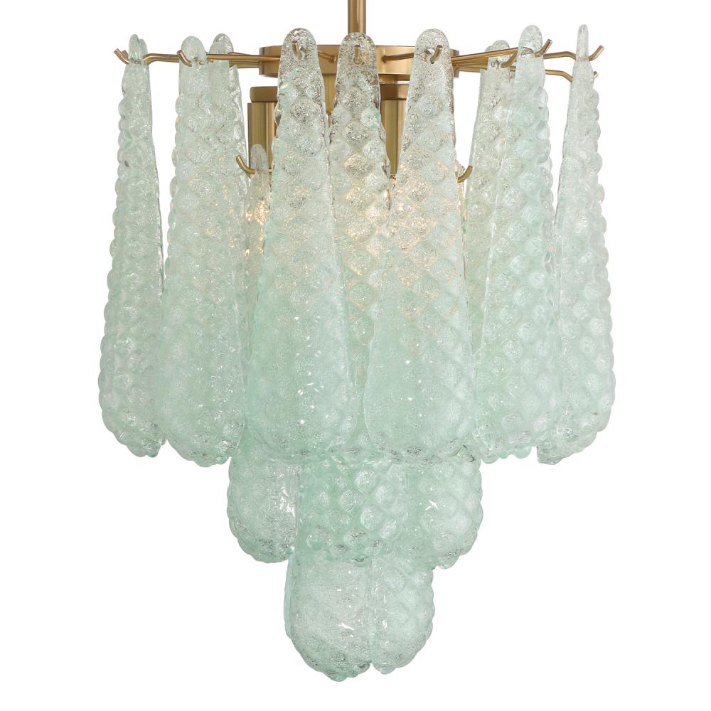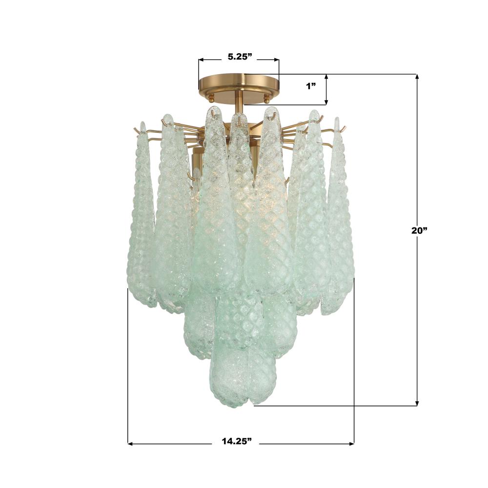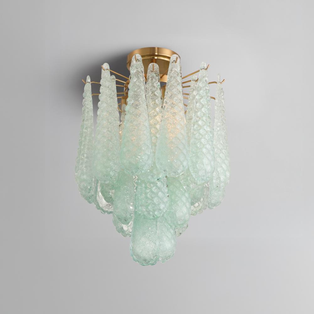Inspired by vintage and mid-century design, the Ollie collection features hand-blown glass with intricate raised details. The beautiful hues of this collection shift subtly depending on whether the light is on or off, creating a dynamic and artistic effect. This unique piece blends mid-20th-century charm with a modern touch, making it a true statement fixture.