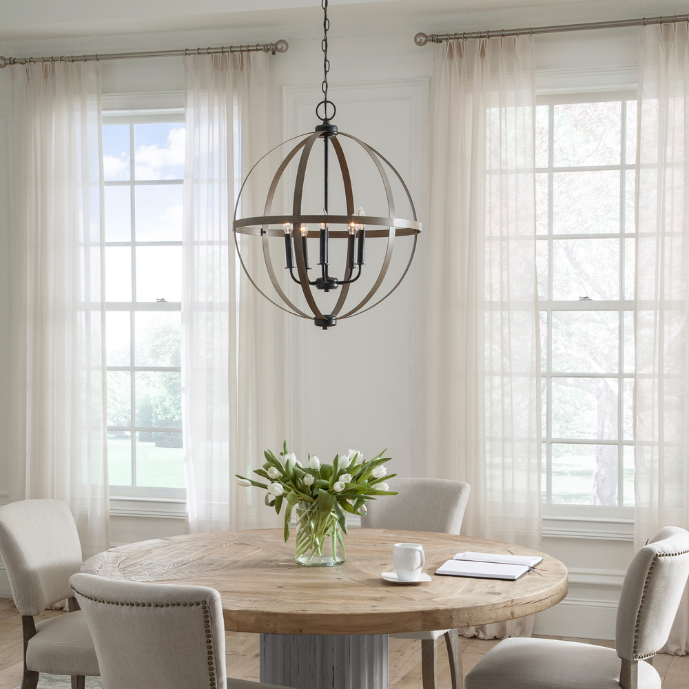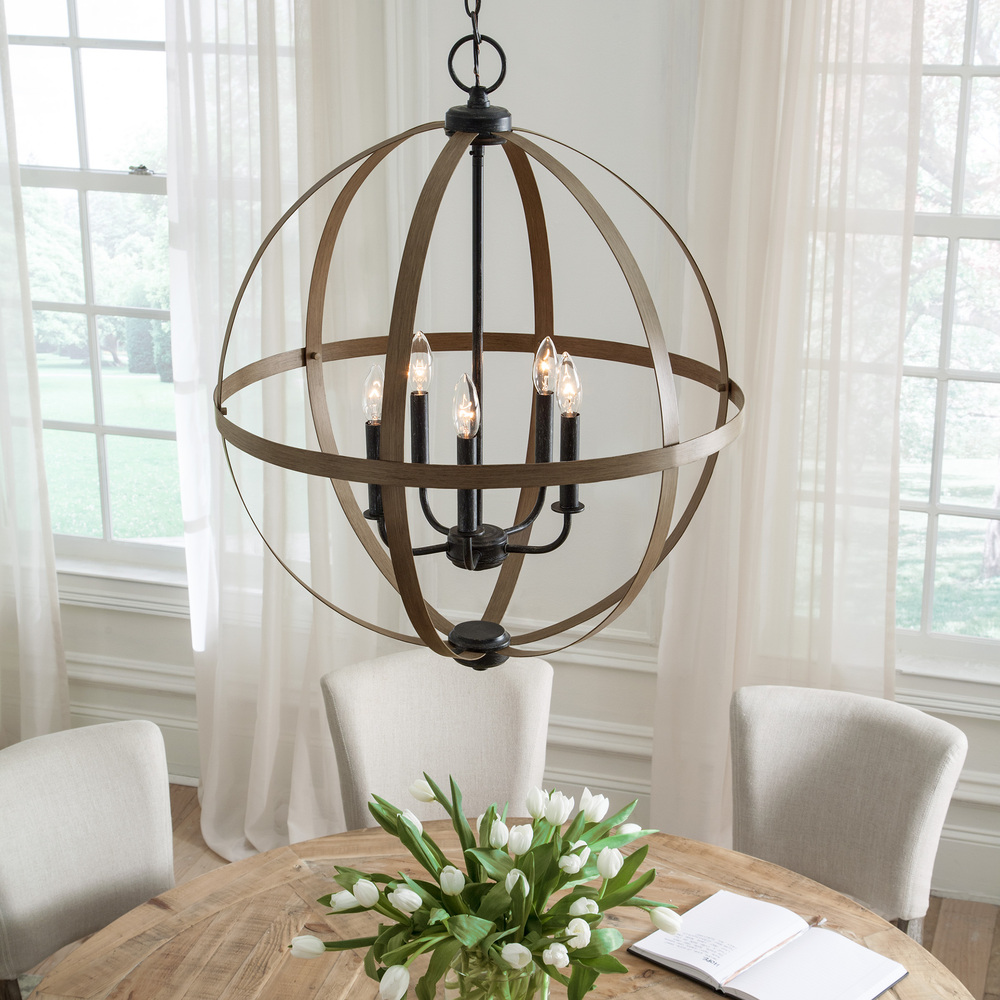 Rustic, farmhouse fixture will complement any dining room, kitchen, living room, family room, or foyer