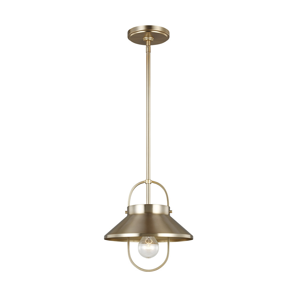 The Dormer one light indoor pendant in Satin Brass is the perfect way to bring an element of industrial vibe into any interior space, the simple pendant is an inspiration from converted lofts and rustic cottage dwellings. Both incandescent lamping and ENERGY STAR-qualified LED lamping are available; all fixtures are California Title 24 compliant.