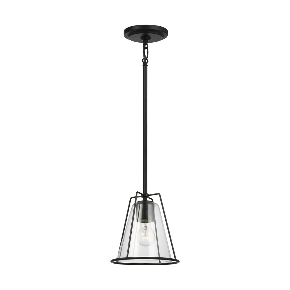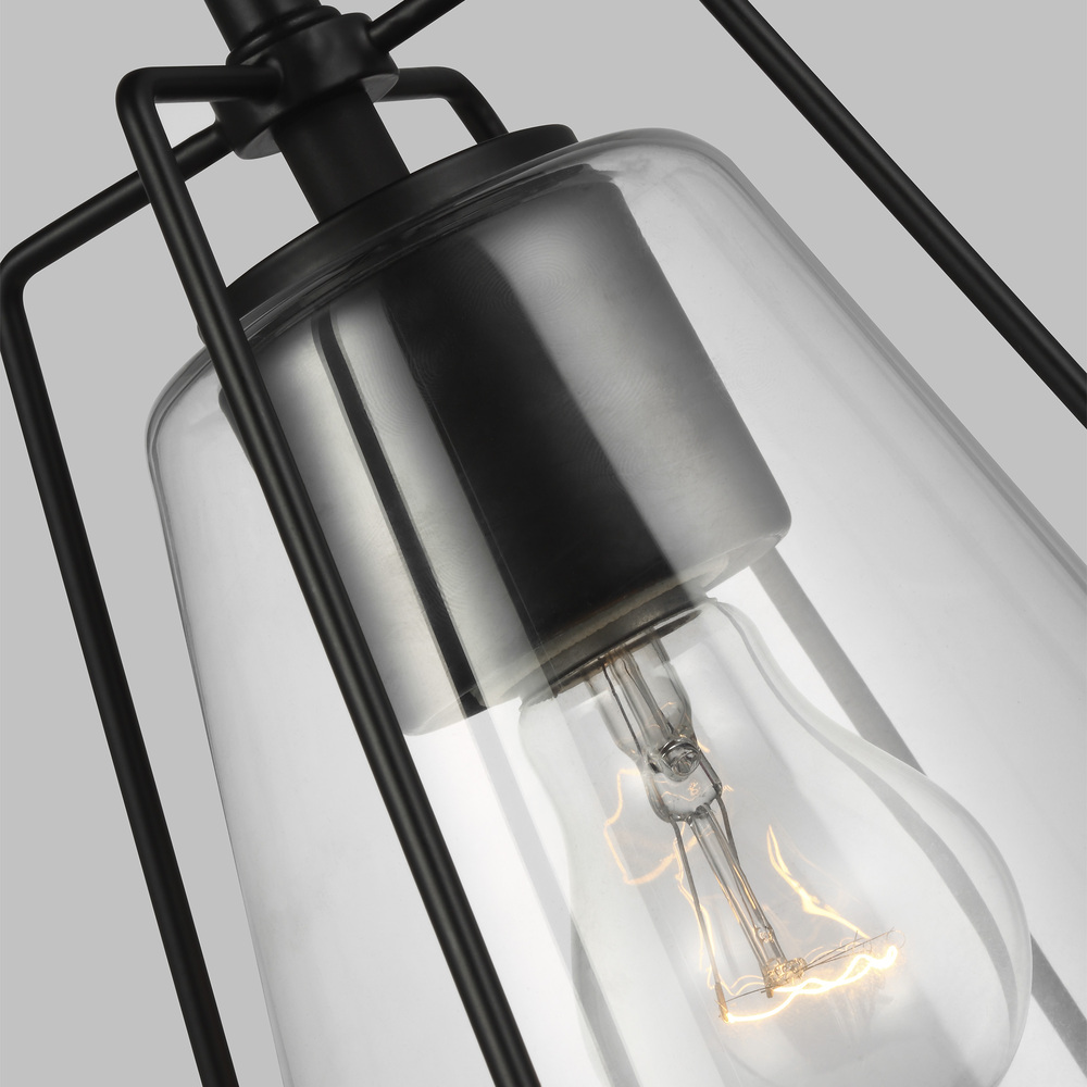 Modern, industrial fixture with traditional form will complement any dining room, kitchen, or foyer