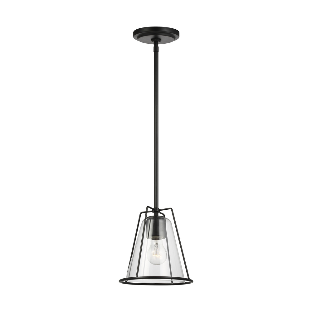 The Framework one light indoor pendant is offered in Brushed Nickel, Matte White and Midnight Black. Crafted of metal with a flared silhouette and clear glass shade. Can be used in multiples above a kitchen island or long dining table for added impact. Both incandescent lamping and ENERGY STAR-qualified LED lamping are available; all fixtures are California Title 24 compliant.