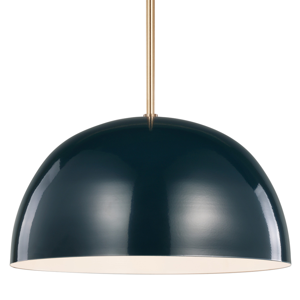 The Ivan one light indoor pendant in Dutch Blue features a classic dome silhouette. The painted white interior of the shade will reflect the light from a standard 60 watt bulb and fill your space with a beautiful warm glow and ample downward focused light. Available in three finishes.