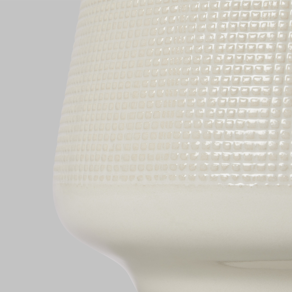 The Ornella small table lamp by AERIN for Visual Comfort Studio has been styled in a pleasing rounded shape enhanced with imprinted net detailing, offering an artistic interplay between a smooth and textured surface. The lamp is further enhanced with a well-balanced linen shade, which casts soft illumination.