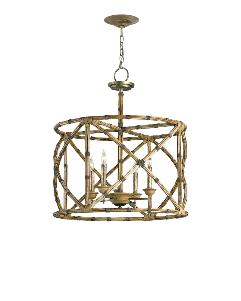 Named for the epicenter of gracious coastal living, the Palm Beach Lantern has high style in its bones. Made of interconnecting stems of the Arurog plant fastened to and with wrought iron, the semblance to bamboo echoes the epitome of West Indies flavor that wafted into the U.S. from the affluent enclave once upon a time. Adding a bit of elegance to the graceful curves of this four-light lantern is a Pyrite bronze finish on the metal.