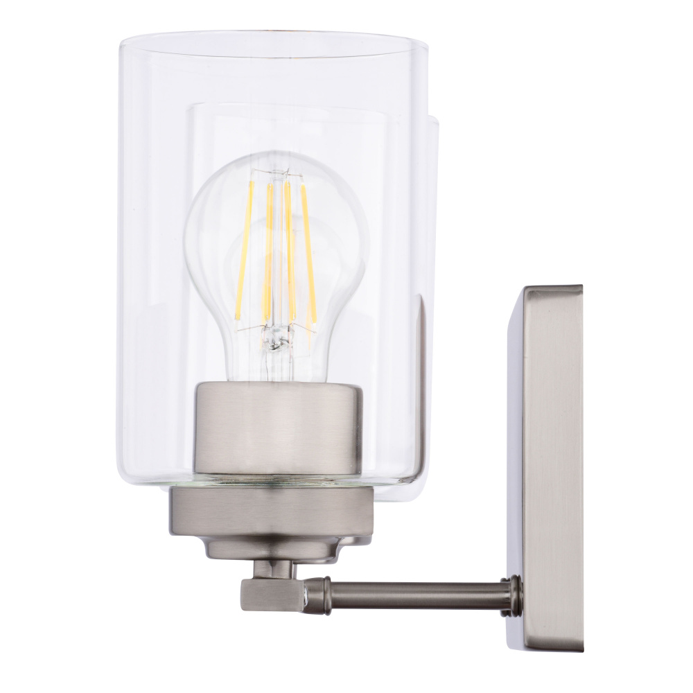 Bring a touch of minimalist sophistication to your bathroom with the Park Ridge 2-light vanity wall fixture. Its satin nickel finish and clear cylindrical glass shade create a striking focal point, casting a crisp, radiant glow perfect for any bathroom setting. Whether your style is contemporary, transitional, or even modern farmhouse, its clean lines and timeless design will complement your decor. The streamlined, straight bar design offers a contemporary edge, seamlessly blending transitional and modern aesthetics, while ensuring a quick and effortless upgrade to your space. Experience the perfect balance of style and function, transforming your bathroom into a personal sanctuary.