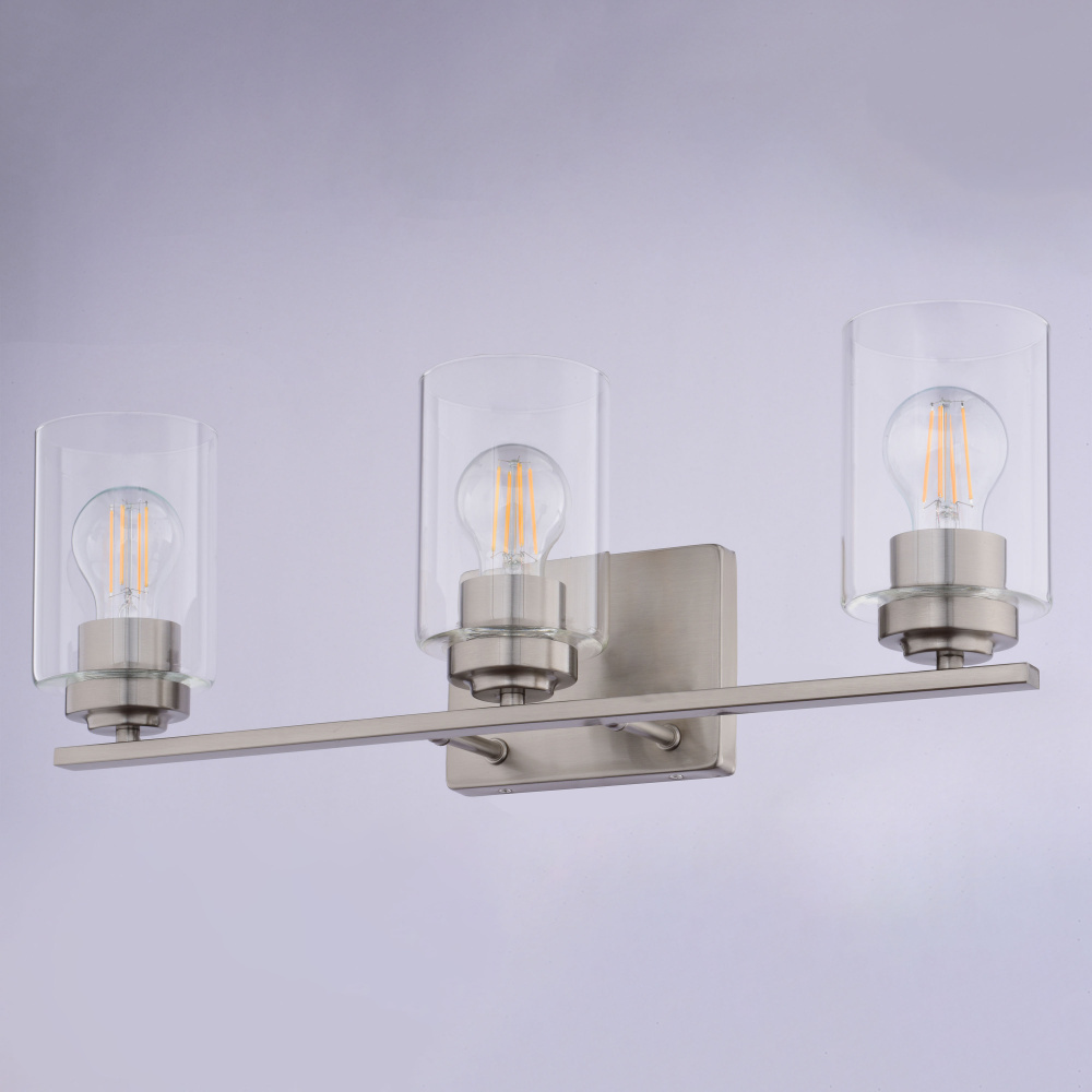 Bring a touch of minimalist sophistication to your bathroom with the Park Ridge 3-light vanity wall fixture. Its satin nickel finish and clear cylindrical glass shade create a striking focal point, casting a crisp, radiant glow perfect for any bathroom setting. Whether your style is contemporary, transitional, or even modern farmhouse, its clean lines and timeless design will complement your decor. The streamlined, straight bar design offers a contemporary edge, seamlessly blending transitional and modern aesthetics, while ensuring a quick and effortless upgrade to your space. Experience the perfect balance of style and function, transforming your bathroom into a personal sanctuary.