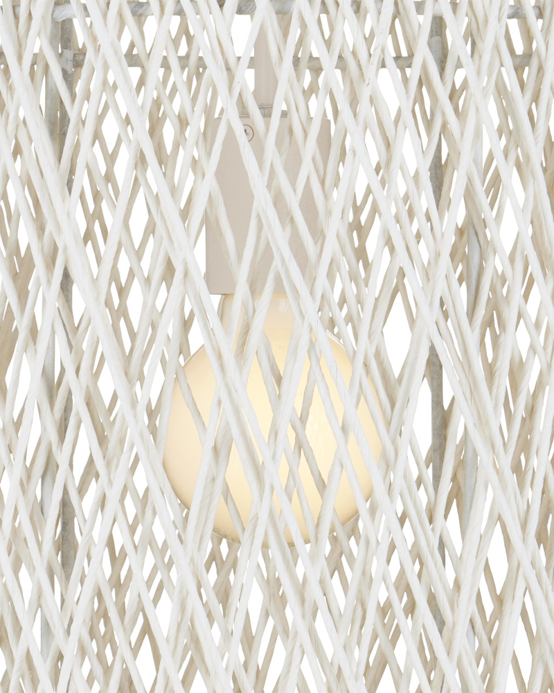 The Partita Pendant is a natural material story through and through. The illumination is softened from the sides and the bottom by grasscloth that shows off its subtle texture when the light filters through it. Surrounding the shade is a rattan pattern that flows elegantly without seeming to begin or end. The process to create this ornamentation is painstaking, as the rattan is steamed and bent by hand, then bound together with thin bands of the same material. to be consistent with the overall color of the other elements, the wrought iron frame and hardware on the pendant are finished in a saddle tan. Adjustable from 24.5" to 92.5" with use of included chain/rod kit/cable. If your space calls for a longer drop, additional chain/rods/cable is available for purchase.