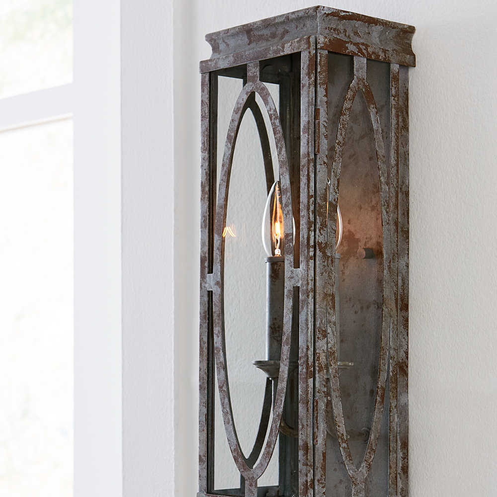 The Patrice two light wall sconce in deep abyss provides abundant light for your bath vanity, while adding a layer of today's style to your interior design. Patrice showcases Visual Comfort Studio' Collection's unwavering commitment to robust construction and craftsmanship. Using our NEW Deep Abyss finish, Patrice is heavily textured and tactile, appearing as though it was pulled from a shipwreck. This humble design with its oval motifs is fitting for a wide range of decor. Patrice also features three outdoor fixtures with a rustic Dark Weathered Zinc finish. The outdoor chandeliers include glass candle covers to protect the lamping. All Patrice chandeliers are damp-rated for use in indoor and covered outdoor spaces.