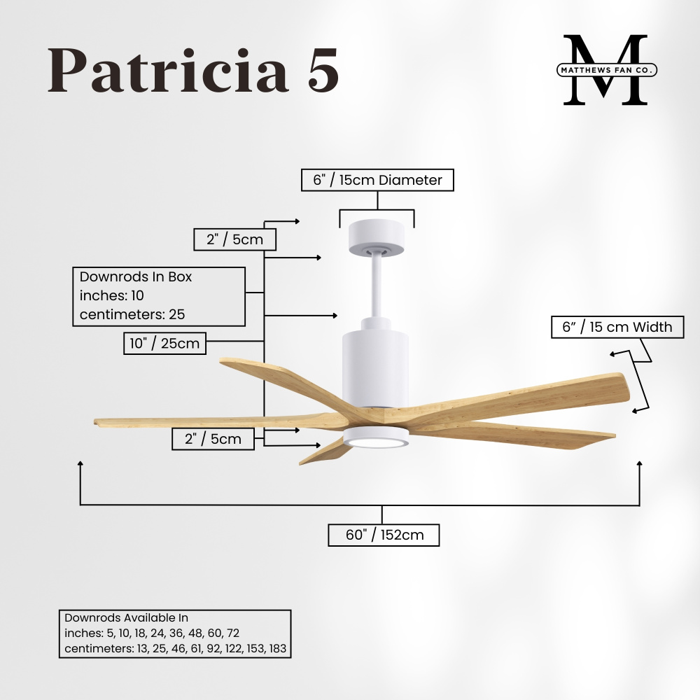 Matthews Fan Company PA5-WH-LM-52 - Patricia-5 - 52" Five Blade Ceiling Fan - 5CCT Integrated LED - Gloss White Finish
