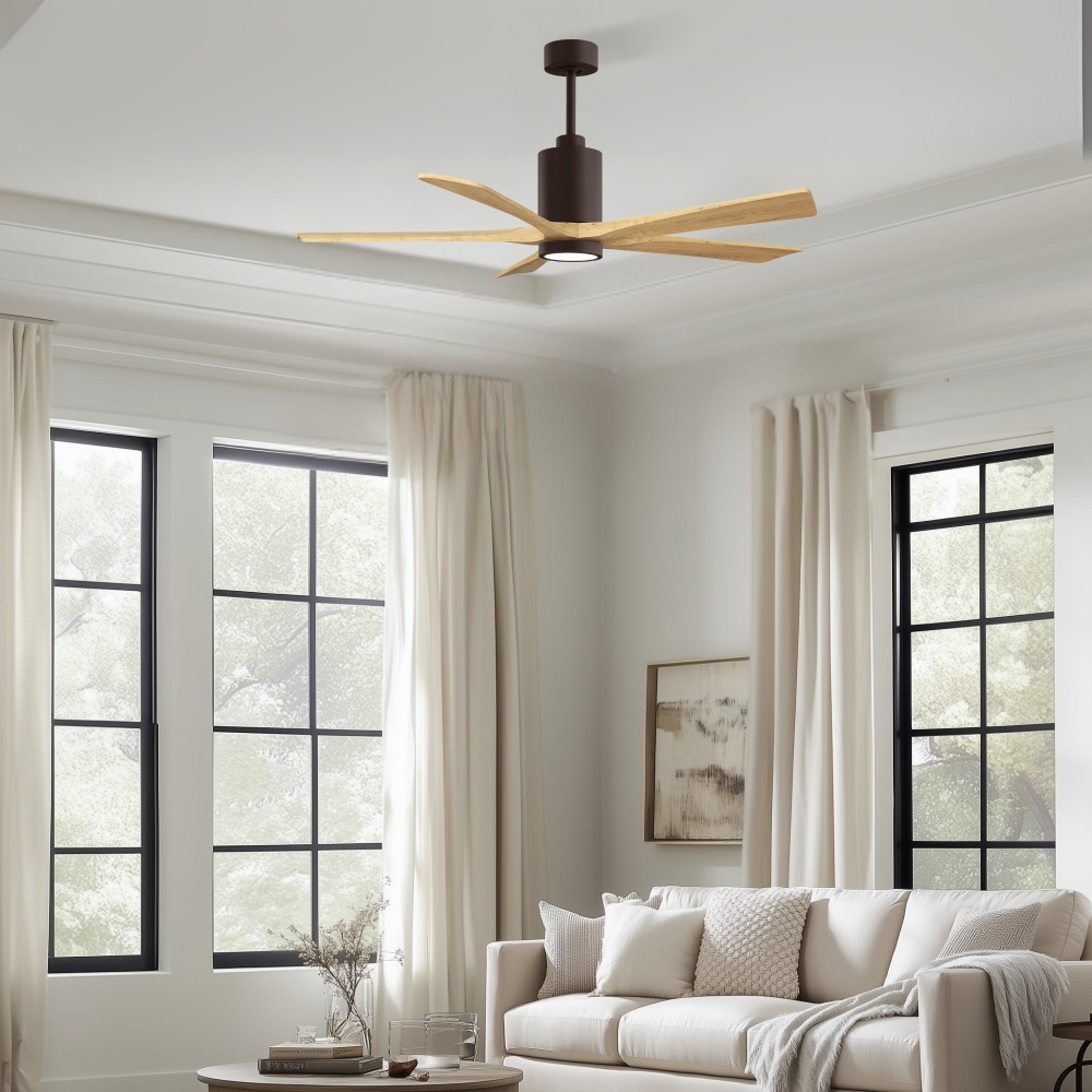 A complement to any commercial or residential space, the Patricia 5 seamlessly combines innovation with simple, refined design. Its elegant aesthetic belies its robust construction. Solid wood blades revolve around a balanced, cylindrical DC motor housing. Air is circulated efficiently with barely more than a whisper. An eco-conscious LED light kit completes the package, making Patricia 5 sophisticated, efficient and green.