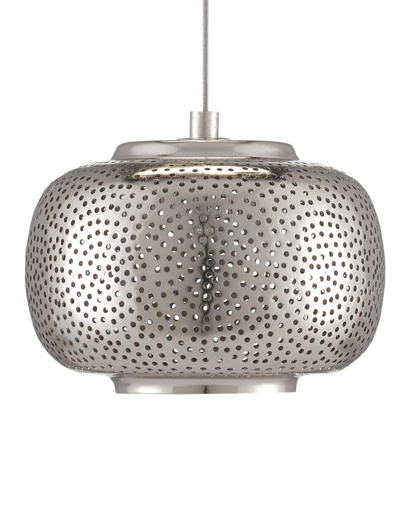Our Pepper 36-Light Multi-Drop Pendant has pierced metal shades in a mix of painted silver and nickel finishes. The textural metal orbs are on point for modern farmhouse and industrial chic interiors. The canopy of this piece is luminous in a painted silver finish. This fixture is among Currey & Company's multi-drop pendant collection, which includes multiple configurations.