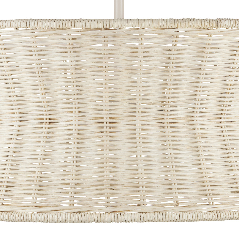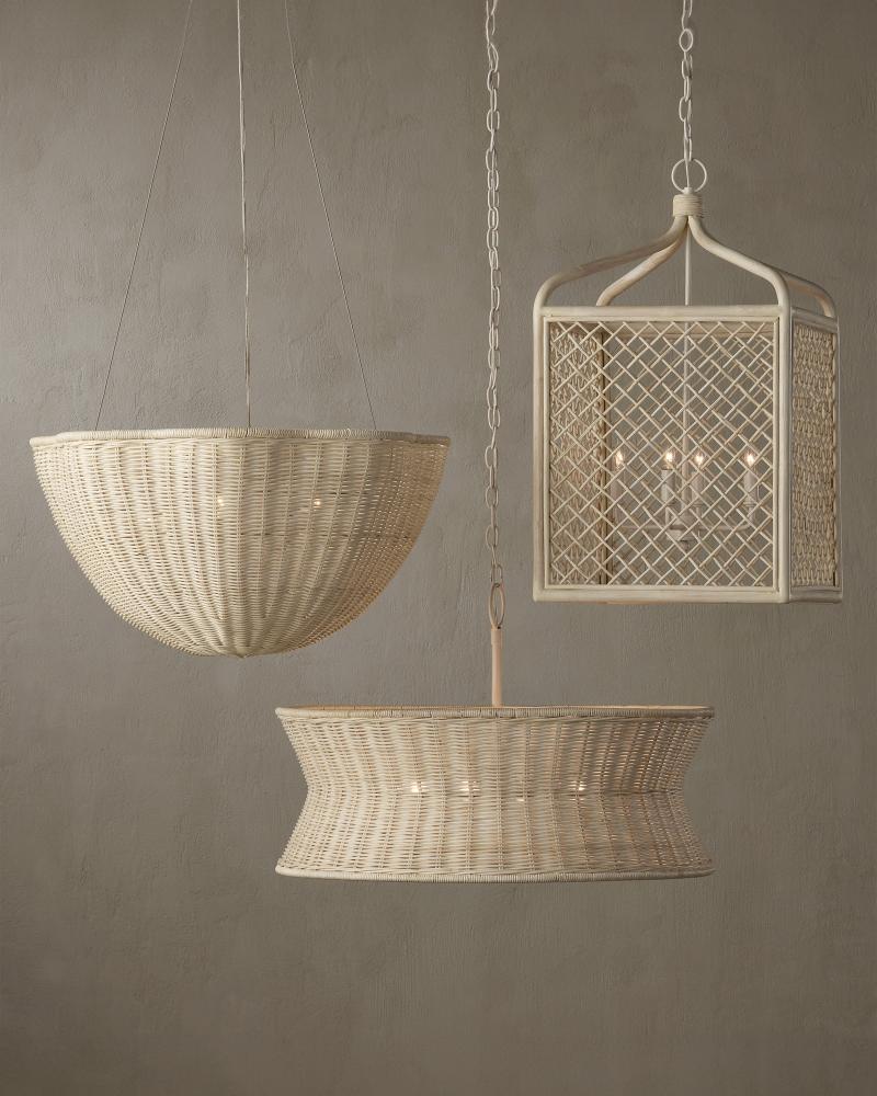 Lightening the profile of the Phebe Small Chandelier is the vanilla finish on the hardware and the bleached wicker shade. This beige chandelier exemplifies the hallmark of artisanal fixtures, with a design that highlights a keen understanding of finely woven natural materials. Adjustable from 26" to 93.5" with use of included chain/rod kit/cable. If your space calls for a longer drop, additional chain/rods/cable is available for purchase.