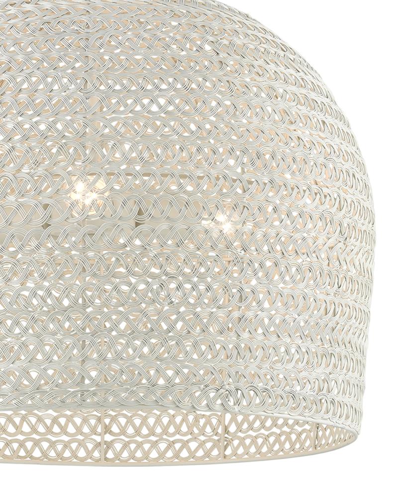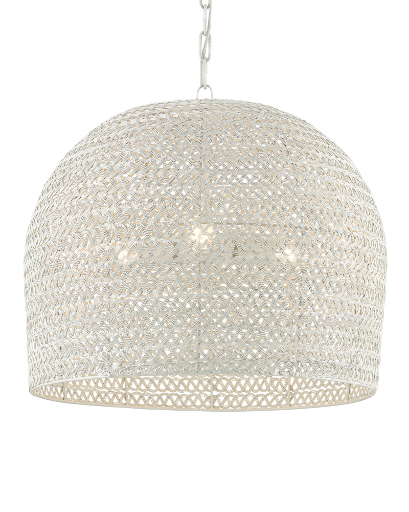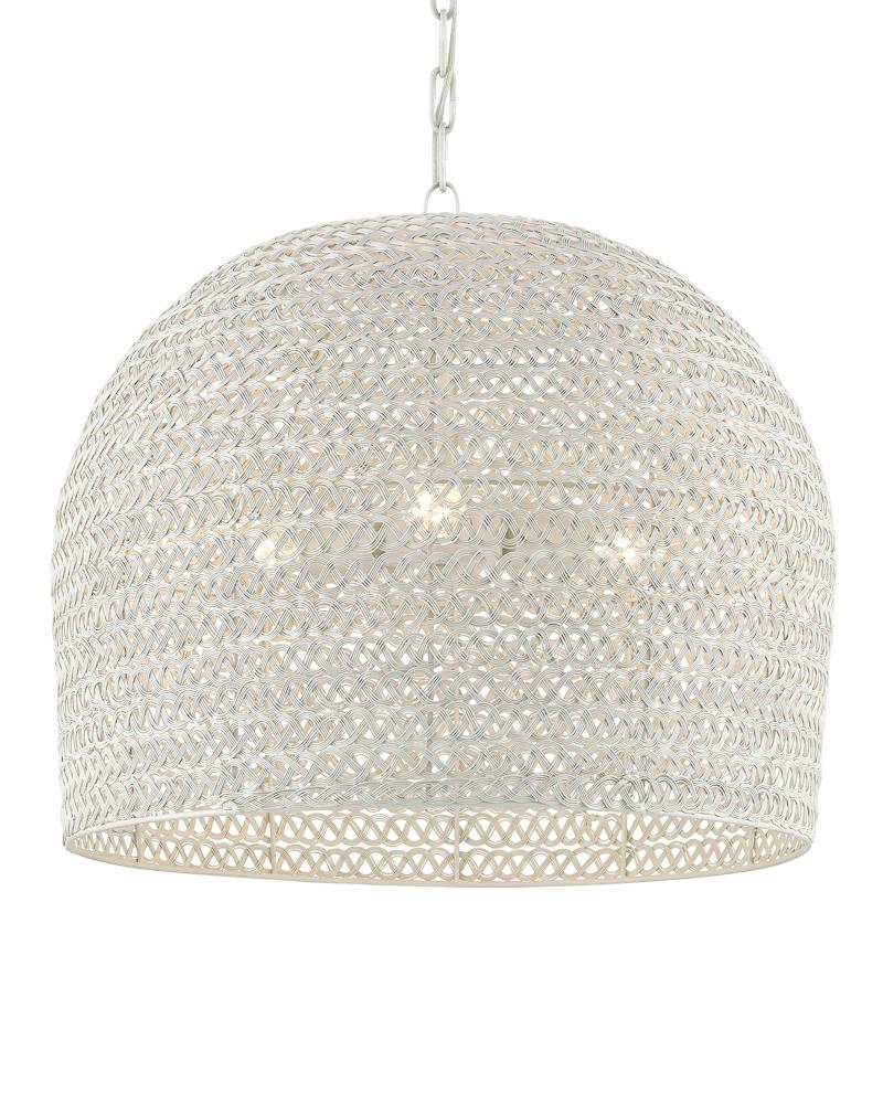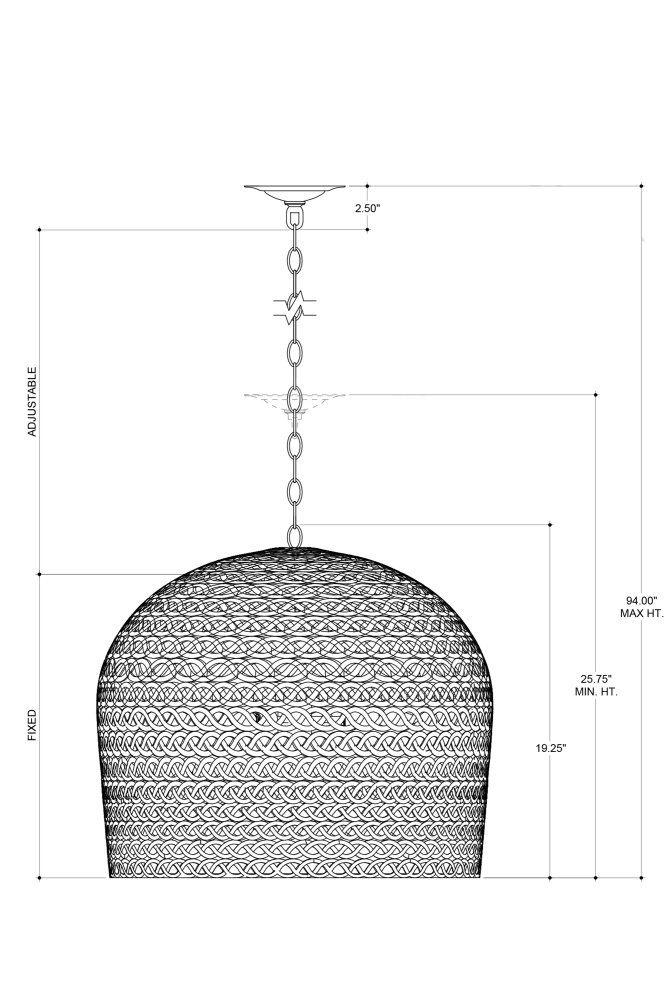 The Piero White Medium Chandelier may appear to be woven from a natural plant material, but it is made of iron in a white finish to make it one of our offerings that illustrates the skills our craftspeople bring to their work. When the white chandelier is illuminated, textural patterns will enliven surrounding surfaces. Adjustable from 24.25" to 94" with use of included chain/rod kit/cable. If your space calls for a longer drop, additional chain/rods/cable is available for purchase.