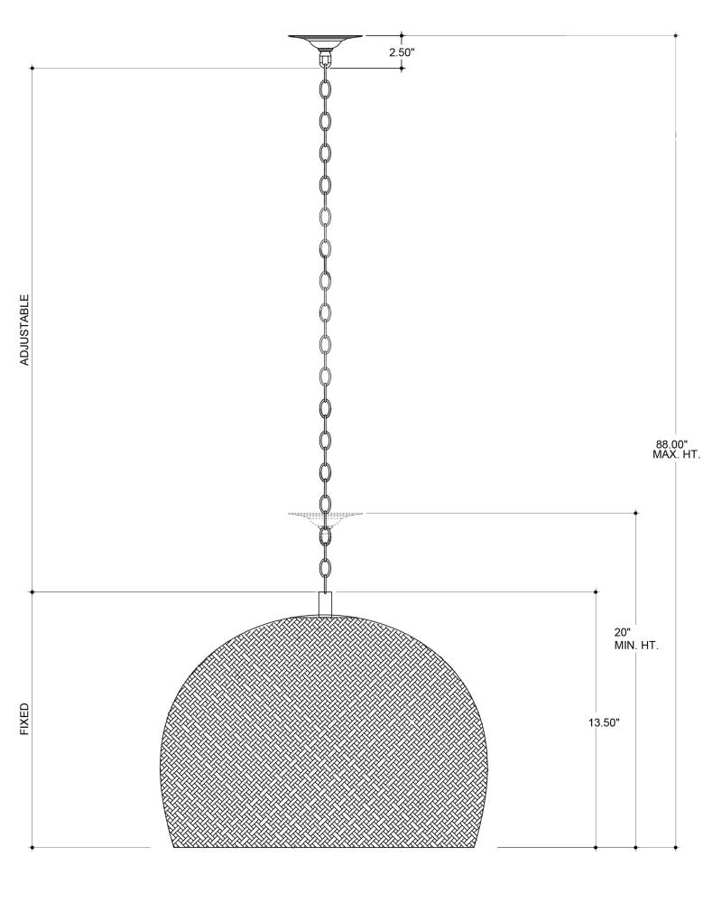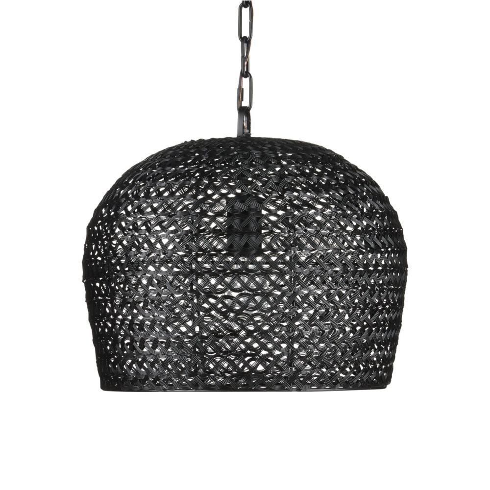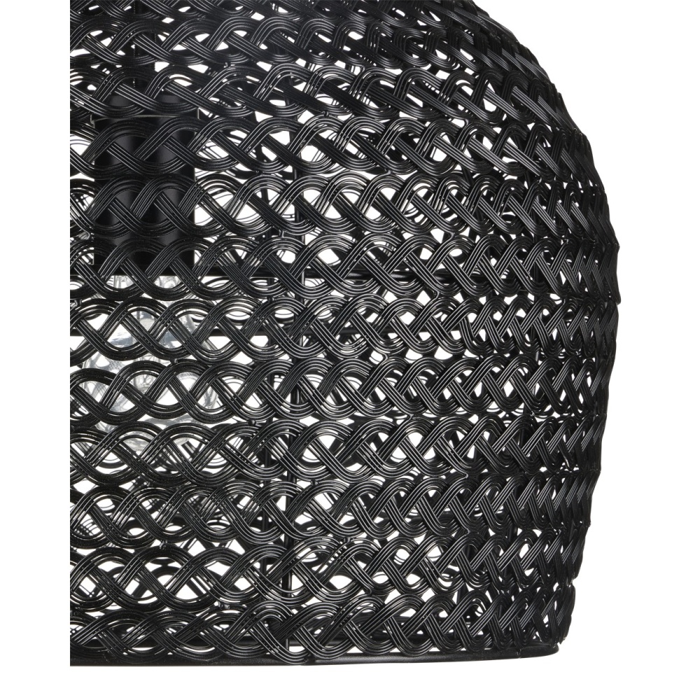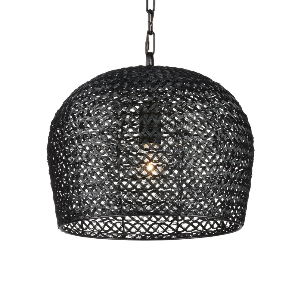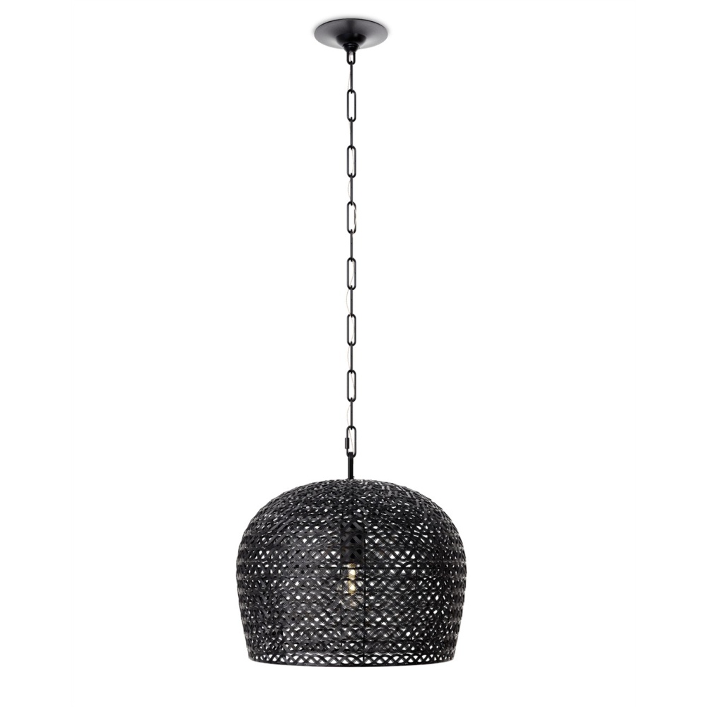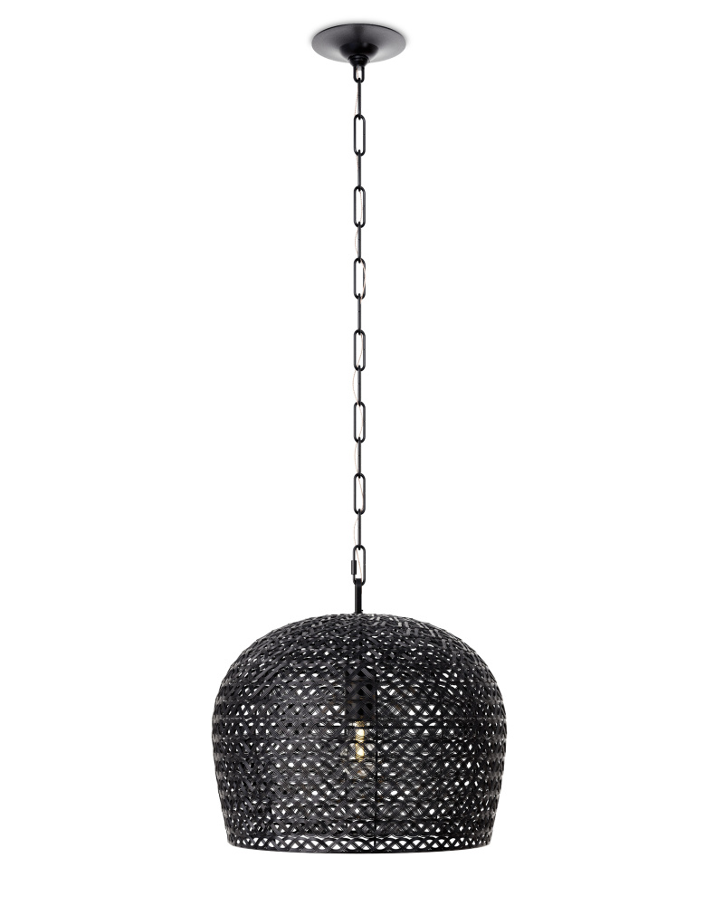 The Piero Black Pendant may appear to be woven from a natural plant material but it is made of iron in a satin black finish to make it an exemplar of the skills that our craftspeople bring to their work. When the black pendant is illuminated, textural patterns will enliven surrounding surfaces; when it is not, the flowing weave will continue to be a textural accent in a space. Adjustable from 20" to 88" with use of included chain/rod kit/cable. If your space calls for a longer drop, additional chain/rods/cable is available for purchase.