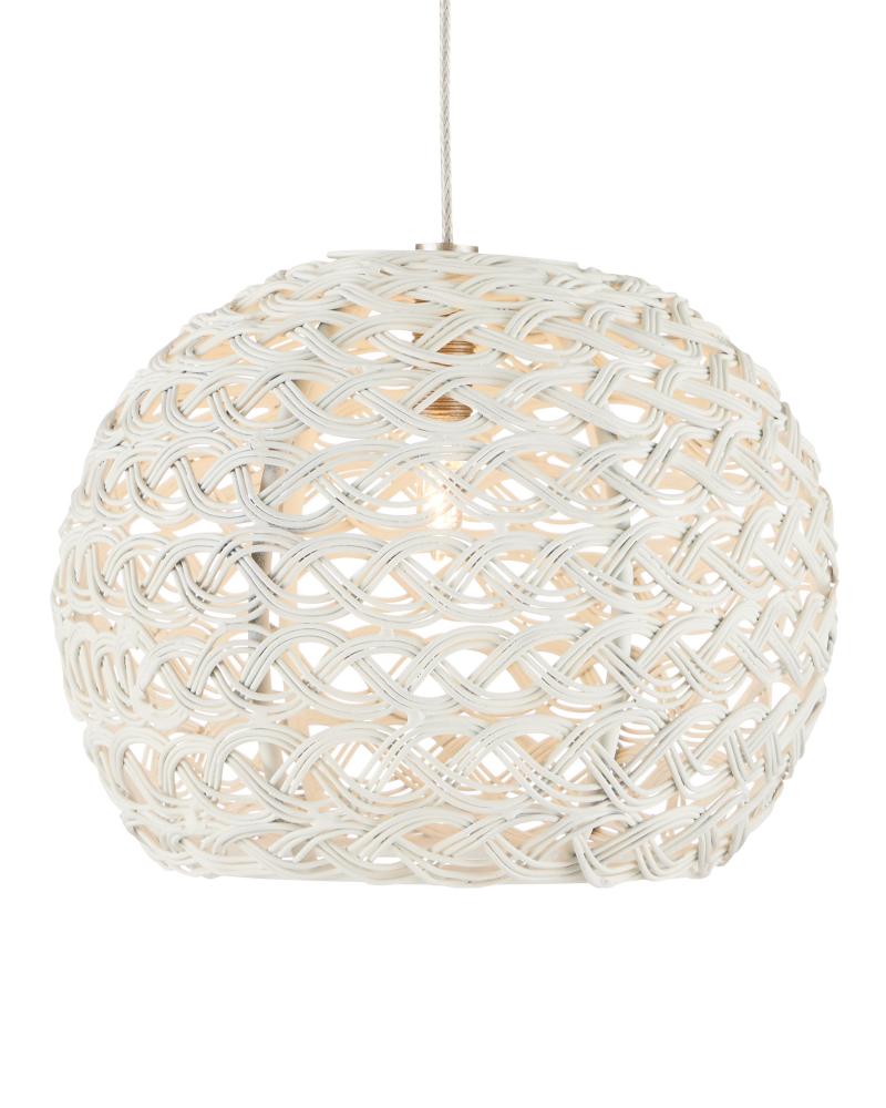 The shades on the Piero 7-Light Multi-Drop Pendant may appear to be woven from a natural plant material, but they are made of iron in a white finish to make it one of our offerings that illustrates the skills our craftspeople bring to their work. When the white pendants are illuminated, textural patterns will enliven surrounding surfaces. The canopy of this piece is luminous in a painted silver finish. This fixture is among Currey & Company's multi-drop pendant collection, which includes multiple configurations.