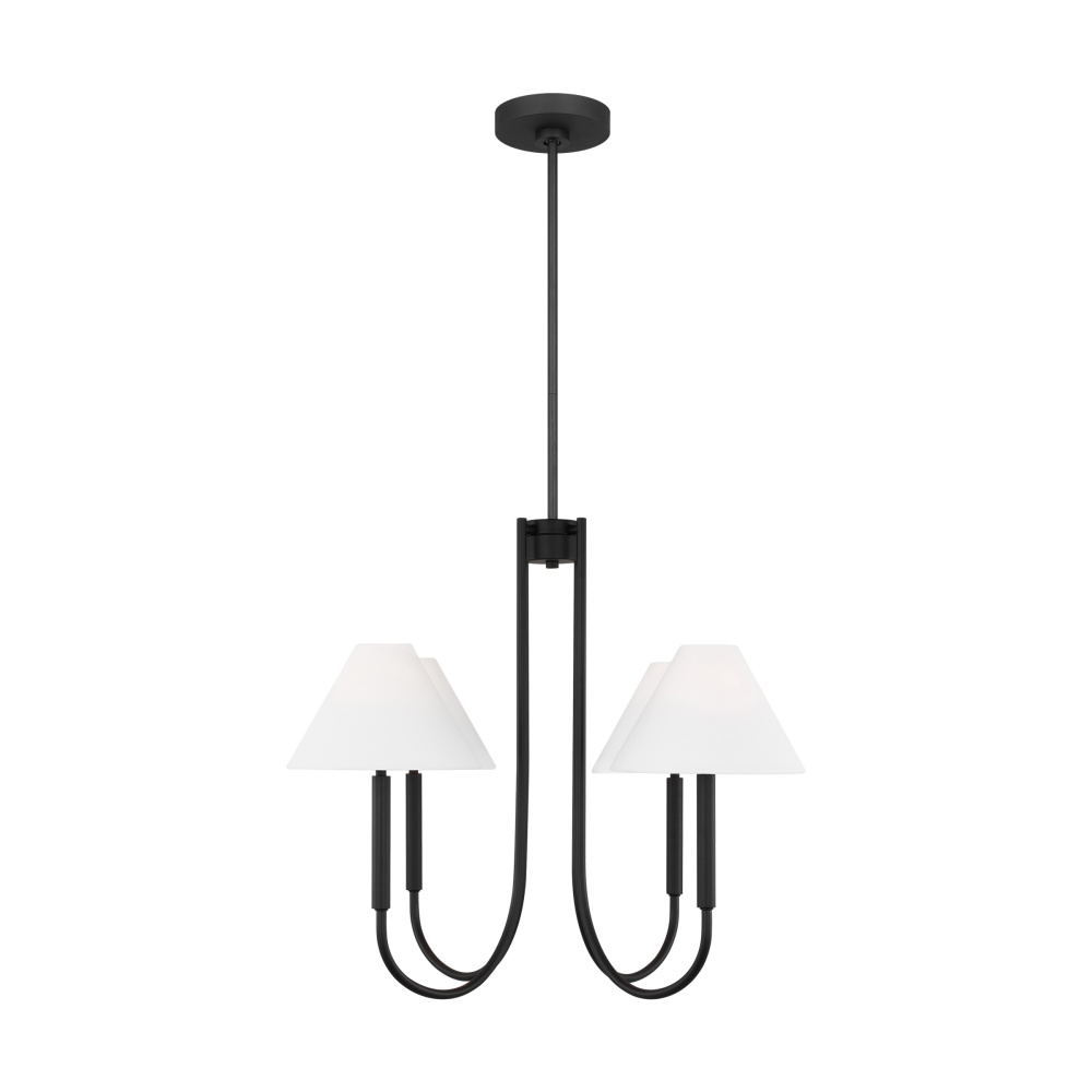 Porteau by Drew & Jonathan Scott is a sleek, chic, contemporary design featuring an updated j-arm style. Made from steel, Porteau features a classic silhouette with curved arms branching from a central rod. Each arm is topped with a candle-style sconce for 60W candelabra bulbs (sold separately), while small fabric drum shades diffuse light for a warm glow.