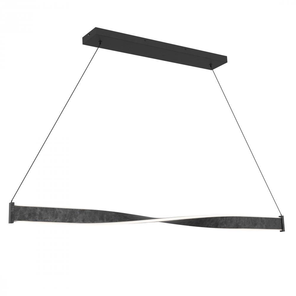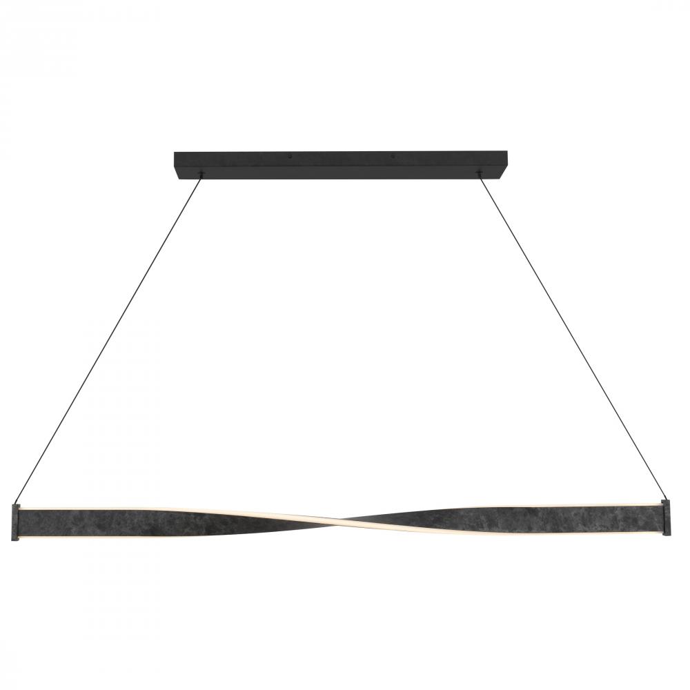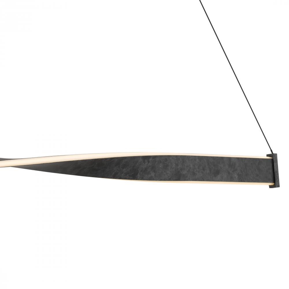 Minimalist in form yet rich in feeling, the Porter Linear Chandelier is a study in quiet elegance. A single ribbon of metal, gracefully twisted at its center, evokes the gentle rhythm of a slow dance or the subtle movement of wind-blown silk. Finished in a