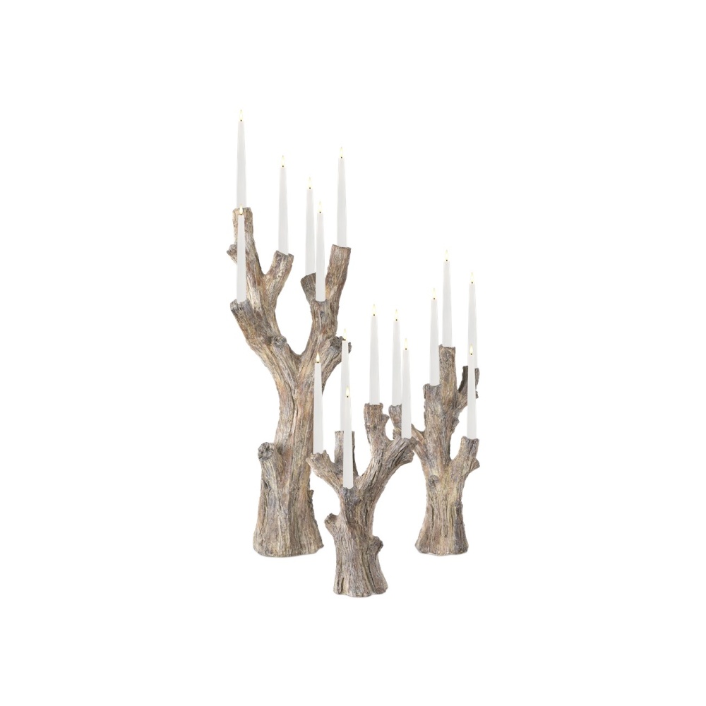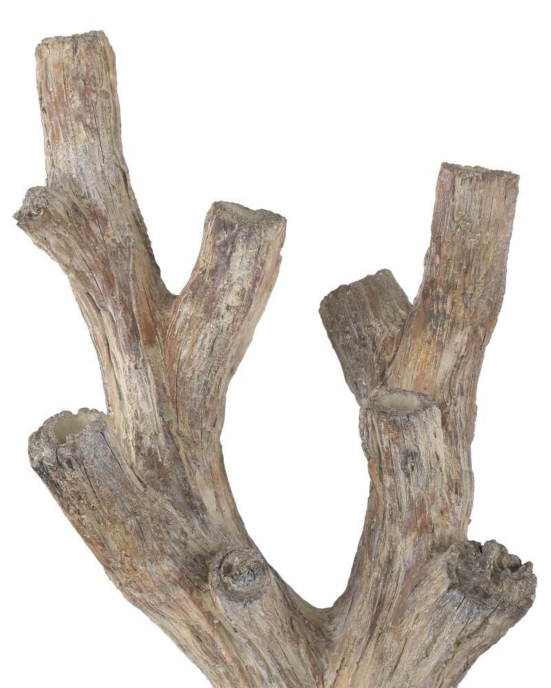 The Rafaela Large Flameless LED Candelabra is a faux bois creation that will hold six LED candle bulbs. The finish on this dark brown candle holder is masterful because it masks the fact that the piece is made of a mix of composite and concrete rather than pure concrete, which makes it lightweight. We offer three sizes so the different heights can be intermingled for even greater charm. Bulbs are not included.