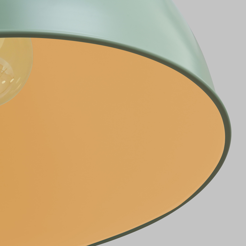 The Robbie pendants are a new enameled industrial metal shade pendant light designed by Thomas O'Brien. Robbie draws inspiration from the vintage factory-style shade with a ring of nice circular holes around the top of the dome. Special new metal fittings enhance this modern interpretation. Industrial-chic perforations along the top rim of the gleaming metal shade add charm to a classic design.