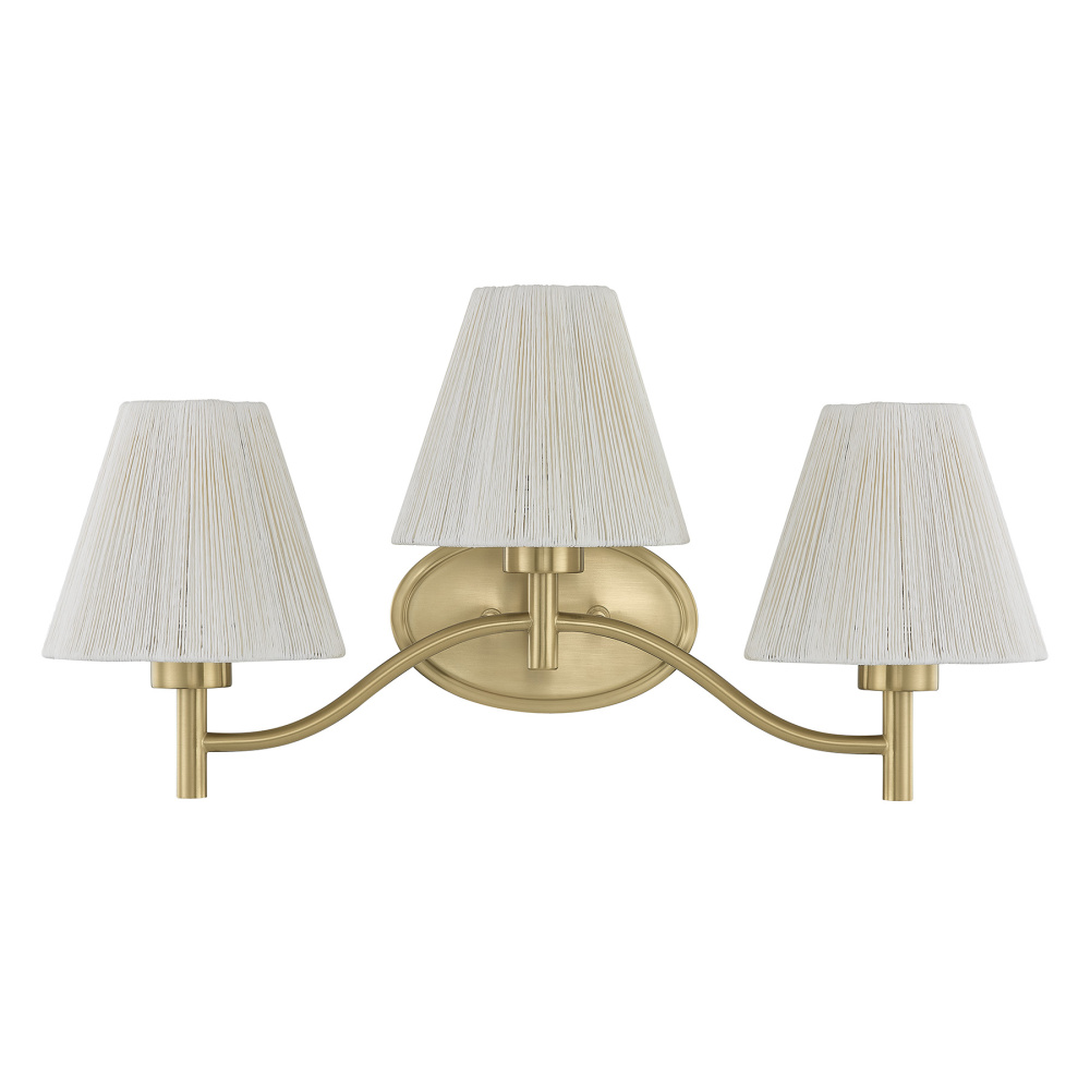 The Savoy House Rosa 3-light bath vanity light was designed by award-winning interior designer and TV host Breegan Jane. Named after the Spanish word for rose, this bath bar blooms beautifully with scalloped white string shades that bring in a hint of coastal ease and organic charm. The Noble Brass finish adds shimmer and shine. Rosa is 12.5" in height, 24.5" in width and extends 10" from the wall. It uses three standard size bulbs of up to 60 watts per bulb. Bulbs not included. This bath bar is damp area rated.