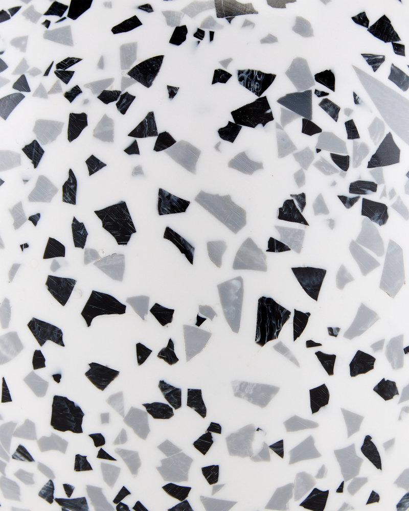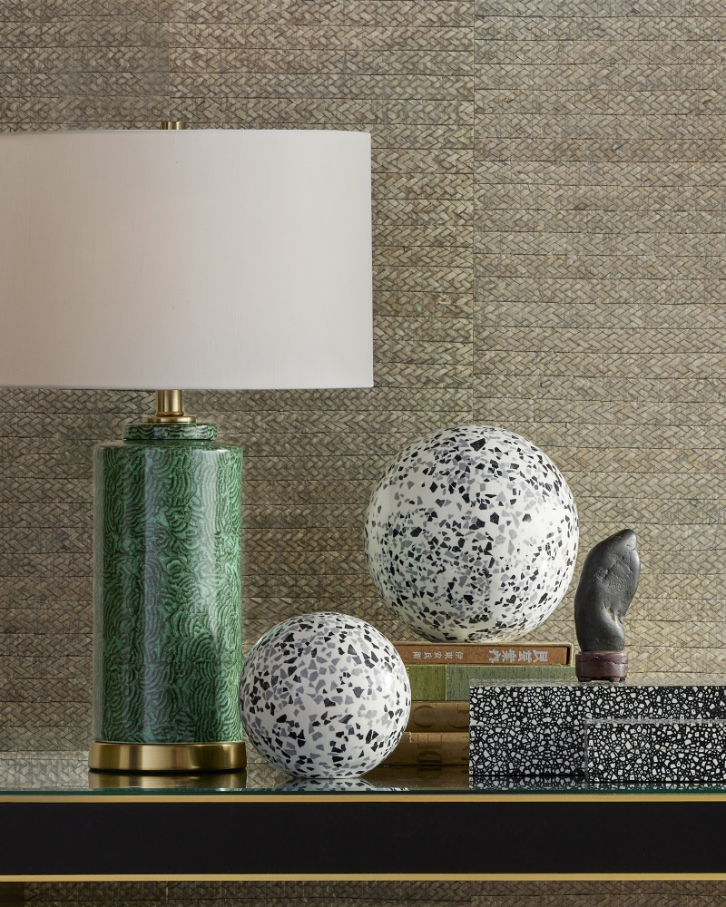 Made of white composite with black and gray flecks of the same material sprinkled along their surfaces, the Ross Speckle Sphere Set includes small and large matching white balls that will add hints of texture to decorative arrangements. The flat bottom allows for an ease of placement atop a stack of books or within shelves.