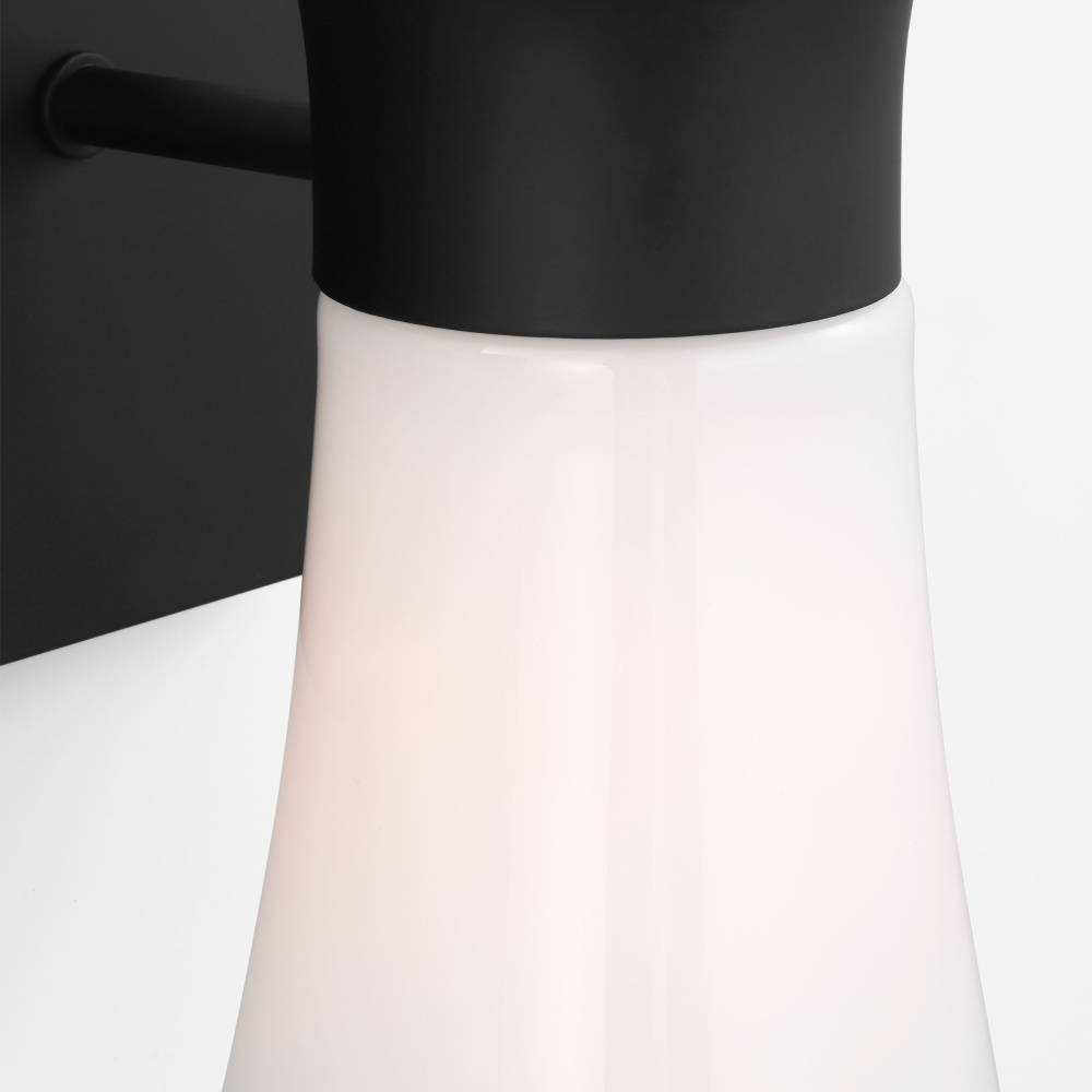 Made to coordinate across a broader range of bath hardware and design styles, this light breathes new life to its traditional shape with milk glass shades and striking, modern finishes