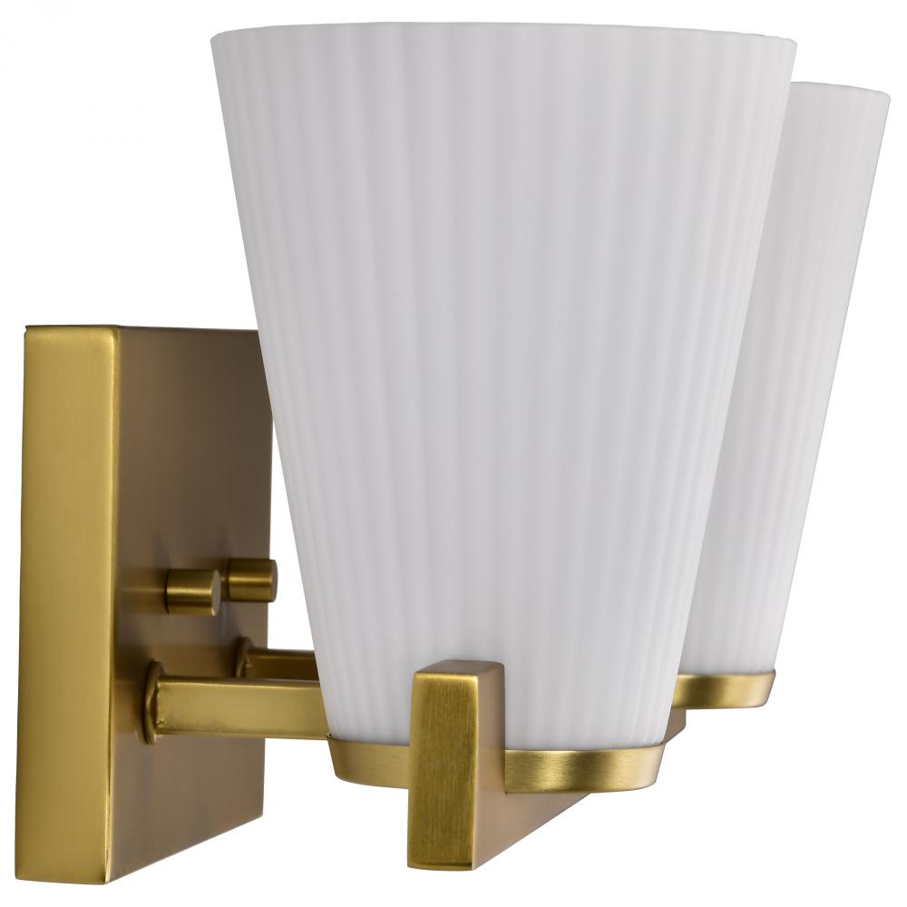 Indulge in the glamour of the Royale 60-8732 two light vanity fixture, where sleek Art Deco silhouettes meet modern refinement. The satin white pleated glass adds texture and sophistication, diffusing light with a soft, radiant glow. Finished in brushed ni