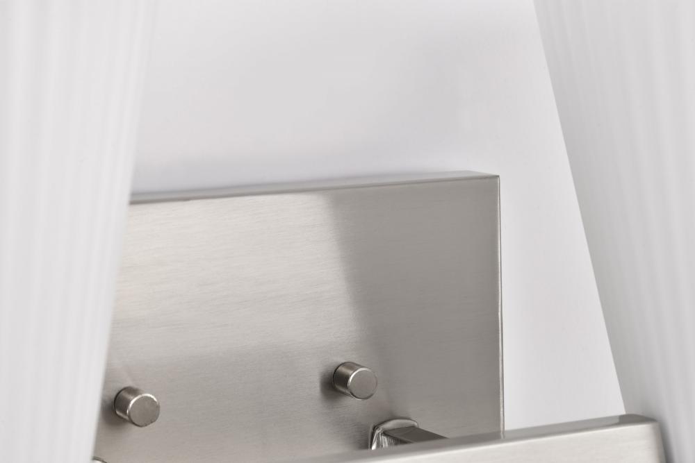 Finished in Brushed Nickel with Ribbed White Glass