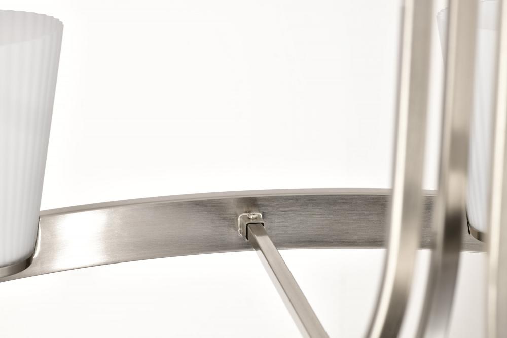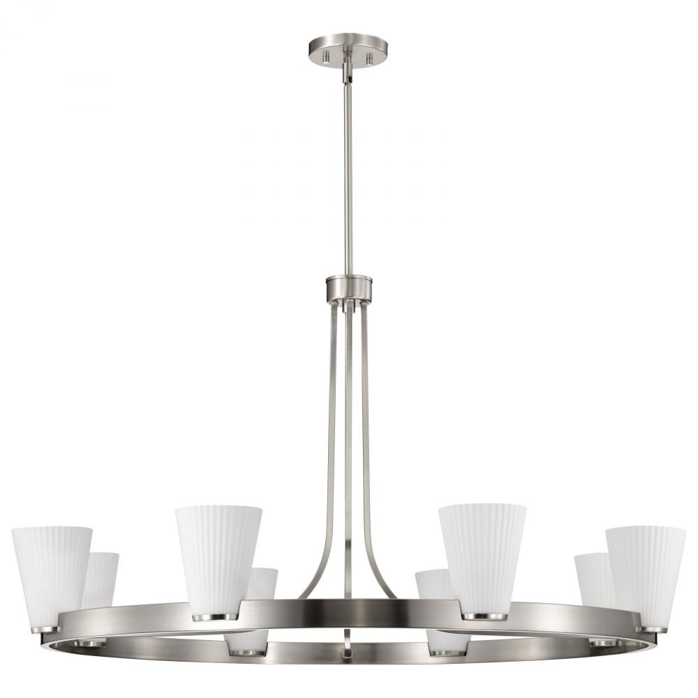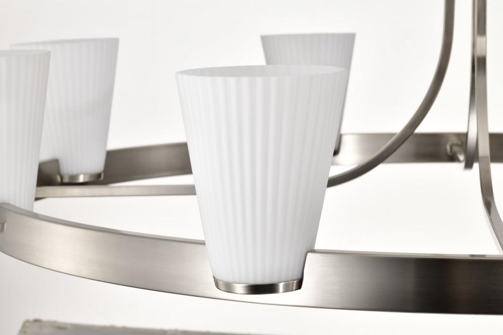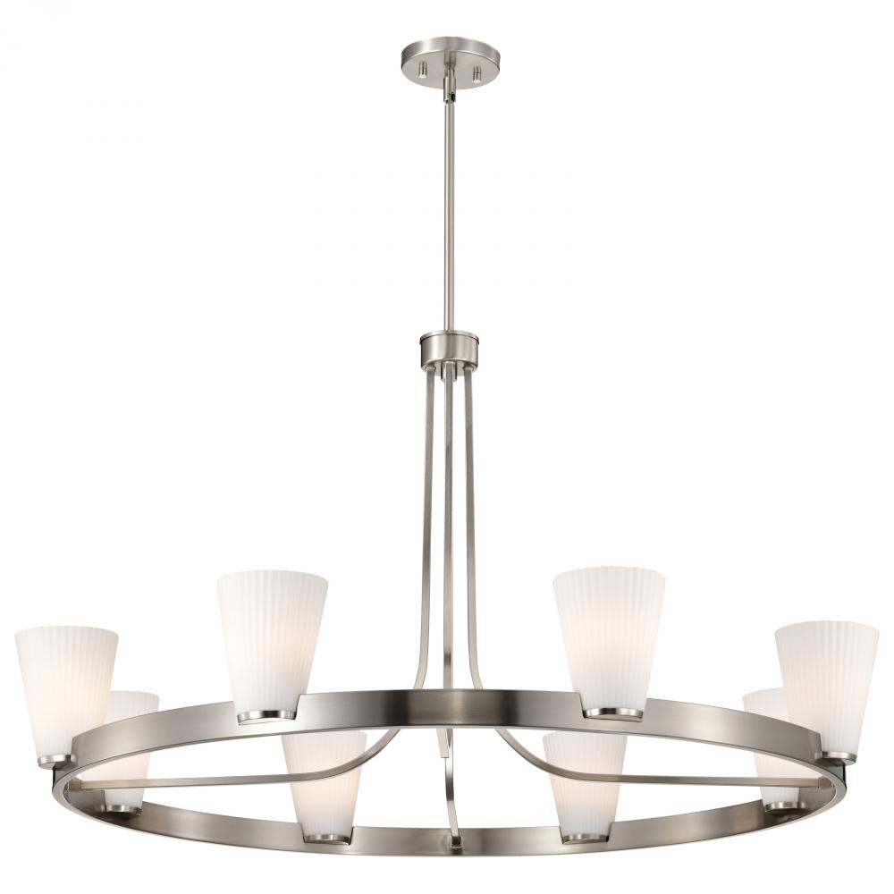 Royale; 8 Light Chandelier; Brushed Nickel Finish; Ribbed White Glass