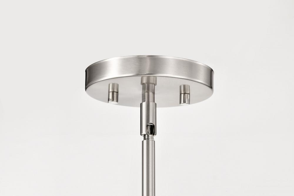 Finished in Brushed Nickel with Ribbed White Glass