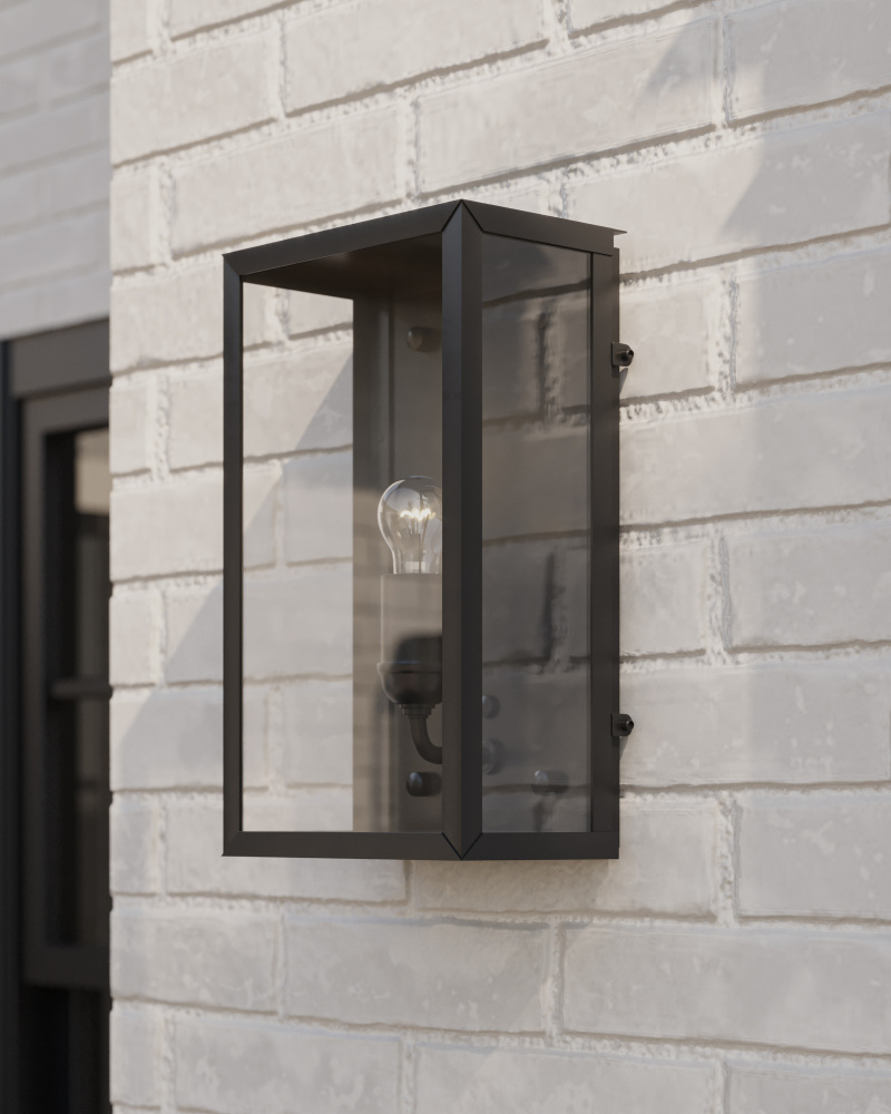 A classic design that looks as if it sprang from the great American industrial revolution, the Royster Black Outdoor Wall Sconce is made of brass in a matte black finish. The simplicity of the design will make this outdoor wall sconce a versatile pieces that will fit in with any number of architectural styles.