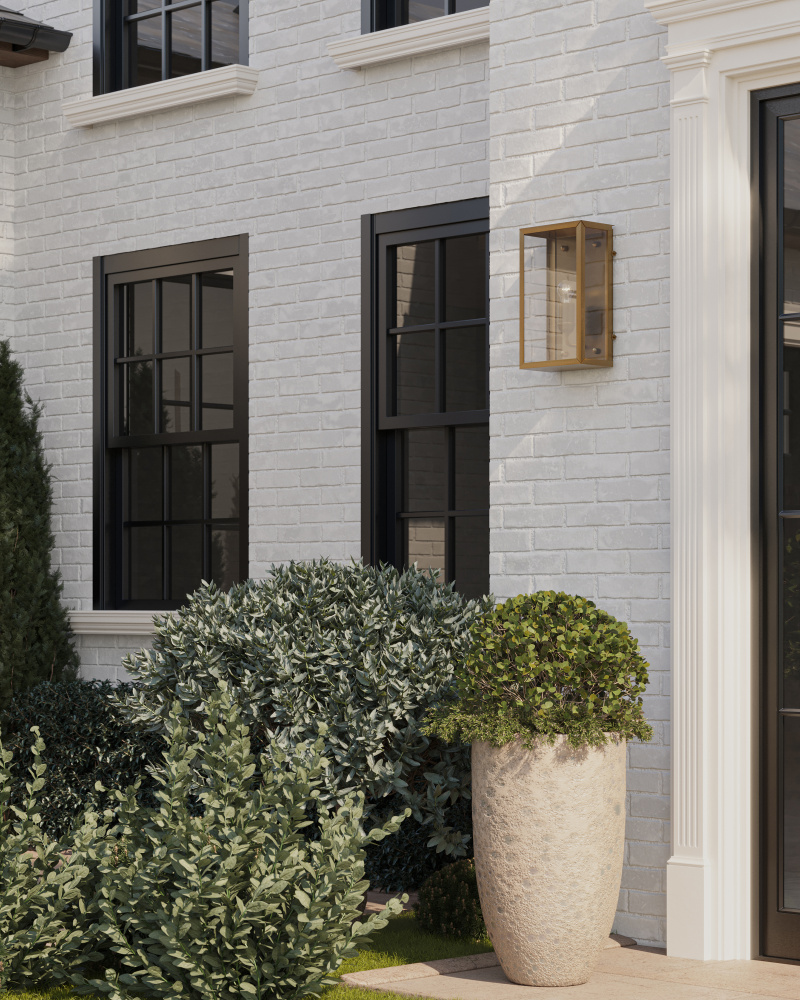 A classic design that looks as if it sprang from the great American industrial revolution, the Royster Brass Outdoor Wall Sconce is made of brass in an antique brass finish. The simplicity of the design will make this gold outdoor wall sconce a versatile piece that will fit in with any number of architectural styles.