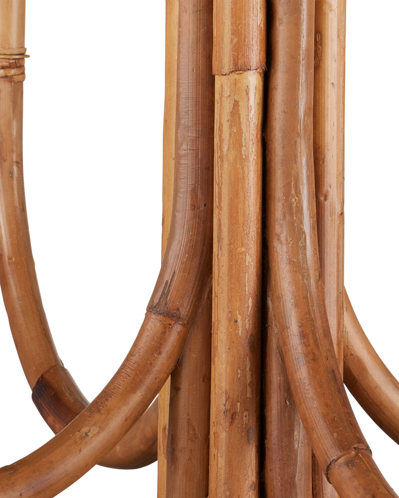 The Samsara Large Chandelier is made from thick reeds of rattan that encase the wire running through the fixture. Bending rattan this thick takes great skill and effort. in order to keep the aesthetics of the natural brown chandelier clean, the candle sleeves and hardware are in a saddle tan finish, and the thinner reeds that wrap these in place are tonally in sync. The Samsara will be a dynamic element in a coastal setting. Adjustable from 46.5" to 125.5" with use of included chain/rod kit/cable. If your space calls for a longer drop, additional chain/rods/cable is available for purchase.