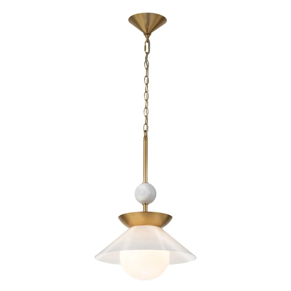 The Saucer 14" Pendant is a unique multi-tier adjustable height item finished in Aged Brass and highlighted by Opal Glass.