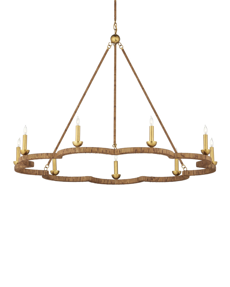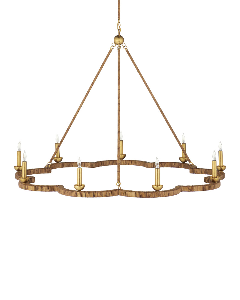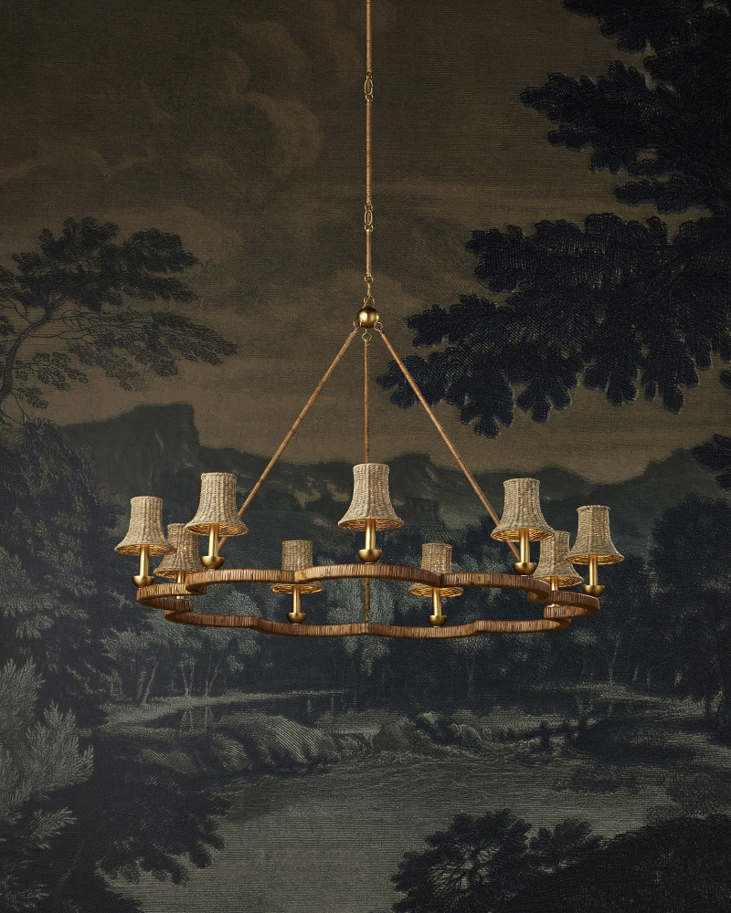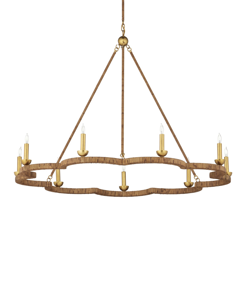 The Savoie Chandelier by Suzanne Duin has the French charm for which her designs are known. The scalloped frame and rods that connect it to the pretty floral-shaped canopy are covered in rattan. Where it is not wrapped in this natural material, it is finished in a contemporary gold leaf finish that brings added warmth to the overall composition. This lovely rope-wrapped chandelier brings a glow and introduces the allure for which the South of France is renowned. Adjustable from 37" to 86" with use of included chain/rod kit/cable. If your space calls for a longer drop, additional chain/rods/cable is available for purchase.