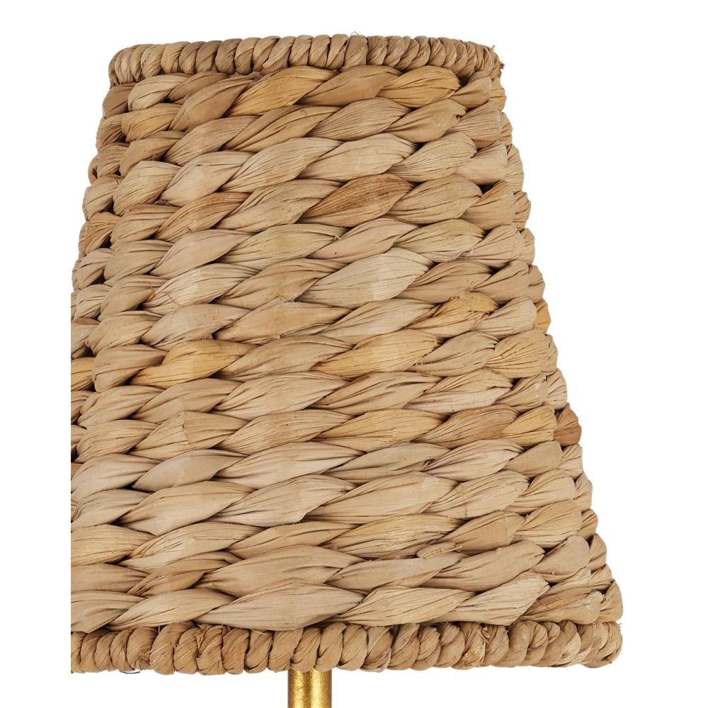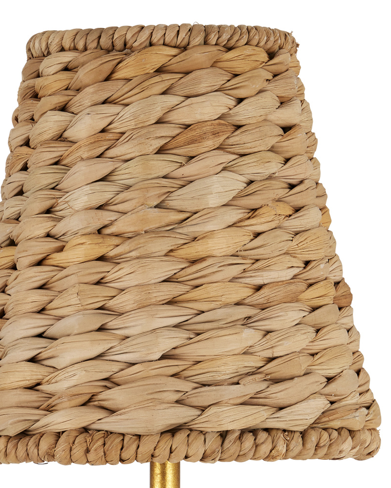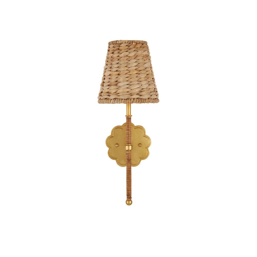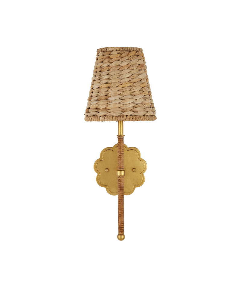 The Savoie Wall Sconce by Suzanne Duin has the French charm for which her designs are known. Made of water hyacinth, the shade is removable. The pretty floral-shaped backplate in a contemporary gold leaf finish matches the parts of the stem that are not covered in rattan. This lovely rope-wrapped sconce will grace its place on the wall with warmth and will introduce the allure for which the South of France is renowned.