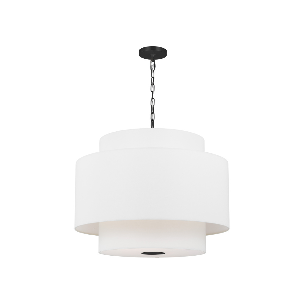 Inspired by kate spade new york whimsical geometry and playful lines, Sawyer has a striking silhouette with graphically tapered shades. A wide double-tiered pendant shade with graphically taped shades. Great over a dining table or nook, or in multiples over an island