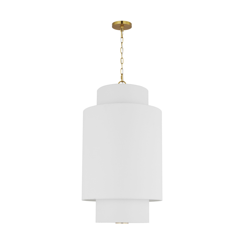Inspired by kate spade new york whimsical geometry and playful lines, Sawyer has a striking silhouette with graphically taped shades. The Sawyer is a wide playful hanging shade with arched lines and wide, graphically taped shades. This simple and graphic chandelier would be great over a dining table or nook, as well as in a living room scenario.