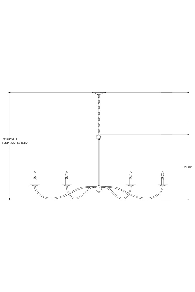 The Saxon Black Chandelier is one of our monumental chandeliers that extends to an impressive 63 inches in diameter. Its shape and the Zanzibar black finish are nods to a bygone era but its slender lines that arc gracefully make its profile modern. Adjustable from 35.5" to 103.5" with use of included chain/rod kit/cable. If your space calls for a longer drop, additional chain/rods/cable is available for purchase.