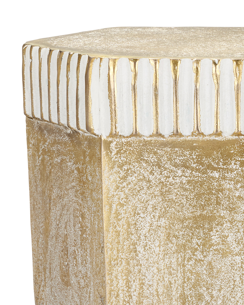 At the top of the mod-squad list, the Sev Travertine Accent Table has a shape that looks back to the past but with forward-thinking finishing techniques. The stainless steel table with a contemporary shape has a gold finish. The natural travertine top sits proud so it will always stay in place. Due to the nature of travertine, there will be color and texture variations.
